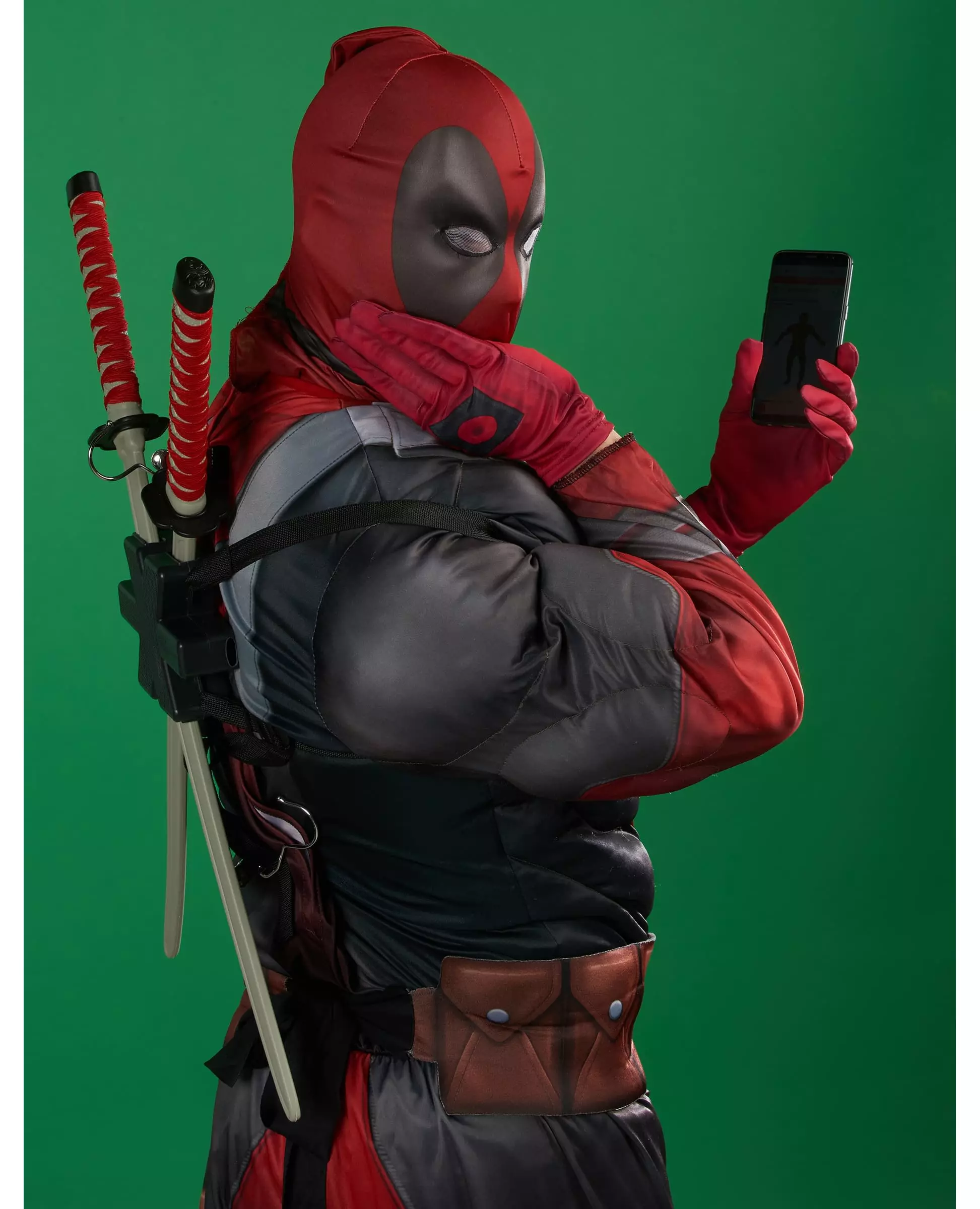 Deadpool is coming to your costume party! This adult Deadpool™ costume is officially licensed. It includes a jumpsuit and a balaclava. The red and black jumpsuit is printed with the famous Marvel™ hero's armor. It is padded at the chest and arms to accentuate the muscular effect. The belt Deadpool wears at his waist is detachable. Shoe covers are sewn onto the jumpsuit. The fabric hood is also red and black. It is openwork at eye level for good visibility and will cover your entire head. This luxury costume will be ideal for transforming yourself into your favorite superhero at a fancy dress party!. Accessories included: 1 Jumpsuit 1 Hood Material: Fabric