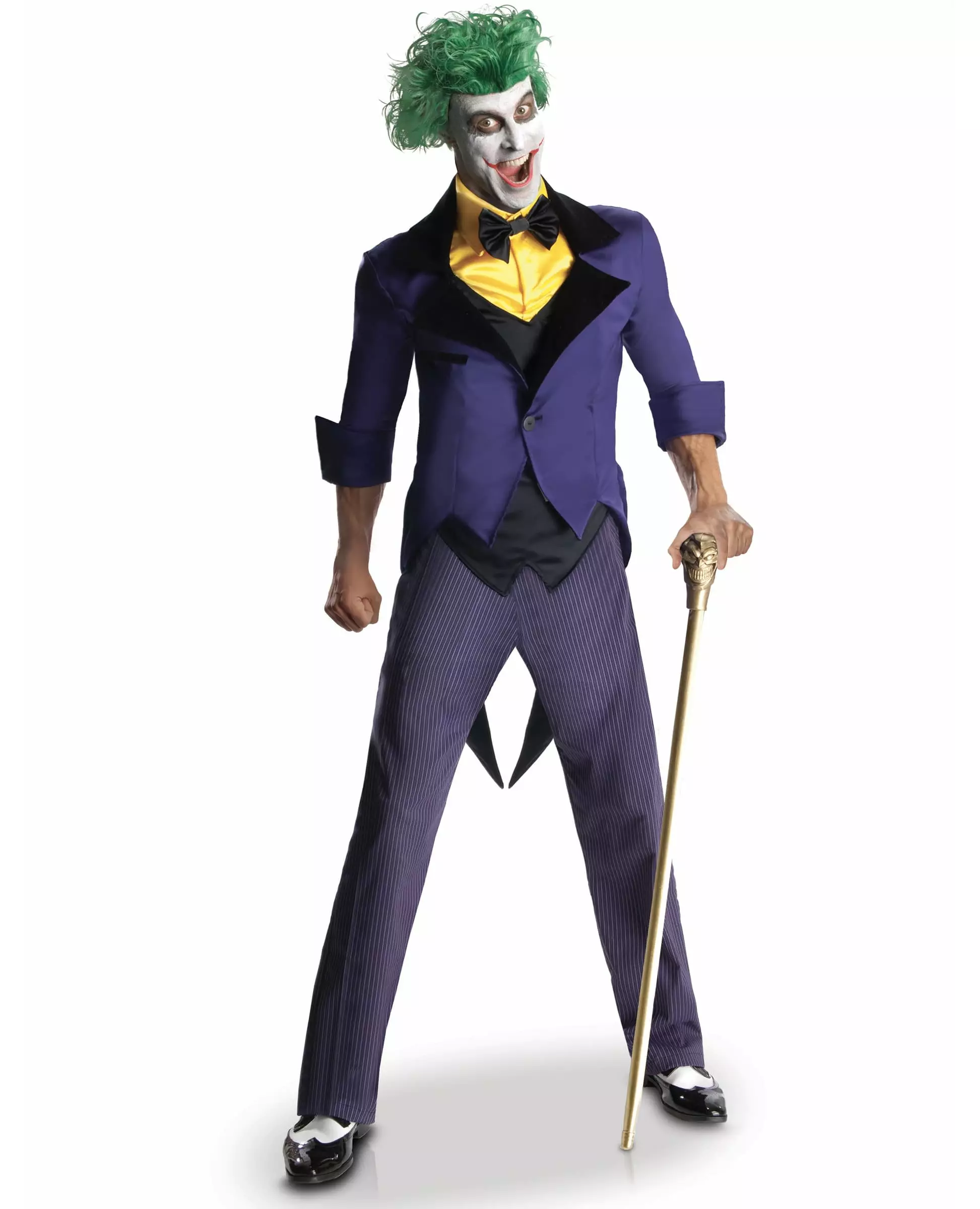 Become Batman's worst enemy with this Deluxe Joker™ Adult Costume! This Deluxe Joker™ Costume is officially licensed. It includes a tailcoat jacket with attached shirt and bow tie, and pants (cane, shoes, and wig not included). The jacket and pants are purple, the shirt is yellow, and the bow tie is black. The jacket has a tailcoat for character accuracy. Add a green wig to look like the villain that is The Joker™! Dress up in this Deluxe Joker™ Costume for a DC Comics-themed party! Accessories included: Jacket Pants Material: 100% polyester Care: Hand wash