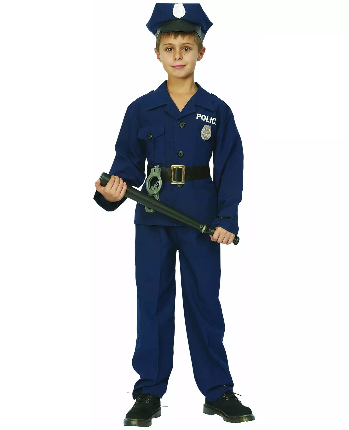 Cap included! This children's police officer costume includes a jacket, belt, pants, and cap. The navy blue jacket, decorated with a badge and a "Police" badge, is designed to give a realistic look. It is easy to put on and matches perfectly with the rest of the outfit. The matching pants, flowing and comfortable, allow great freedom of movement, ideal for chasing down bandits. The black belt adds a finishing touch, while allowing the outfit to be adjusted to the child's size. Finally, the police cap, with its silver badge, completes this outfit and provides a flawless finish. This police officer costume will be perfect for Carnival, a fancy dress birthday party or any other themed party. Your child will become a hero in uniform!. Accessories included: Cap Jacket Pants Belt Material: 100% Polyester Care: Dry clean