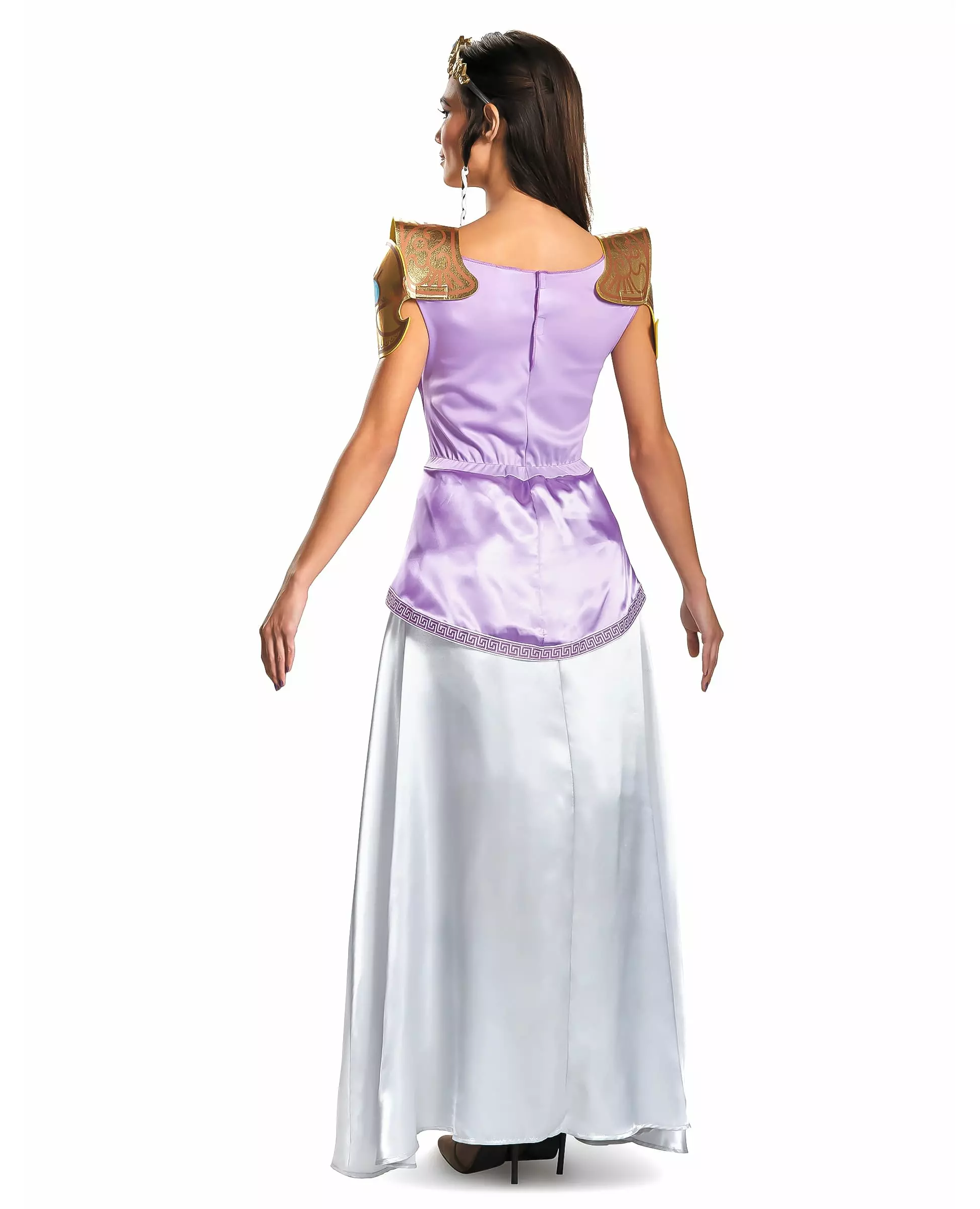 Incorporate the Zelda video game into this complete costume. This officially licensed Princess Zelda™ costume for women consists of a dress, shoulder pads, an apron, and a tiara (sword and shoes not included). Zelda's dress is purple at the bust and white at the bottom. It is long and falls to her feet. The shoulder pads are made of gold fabric with ochre patterns and colored vignettes to represent stones. The apron is a piece of green and blue fabric with a gold and blue element. Finally, a tiara completes this costume. It is gold and blue and is worn like a headband. This complete costume will be perfect for fans of the Zelda video game universe. Accessories included: Dress Shoulder pads Apron Tiara Material: 100% polyester Care: Hand wash