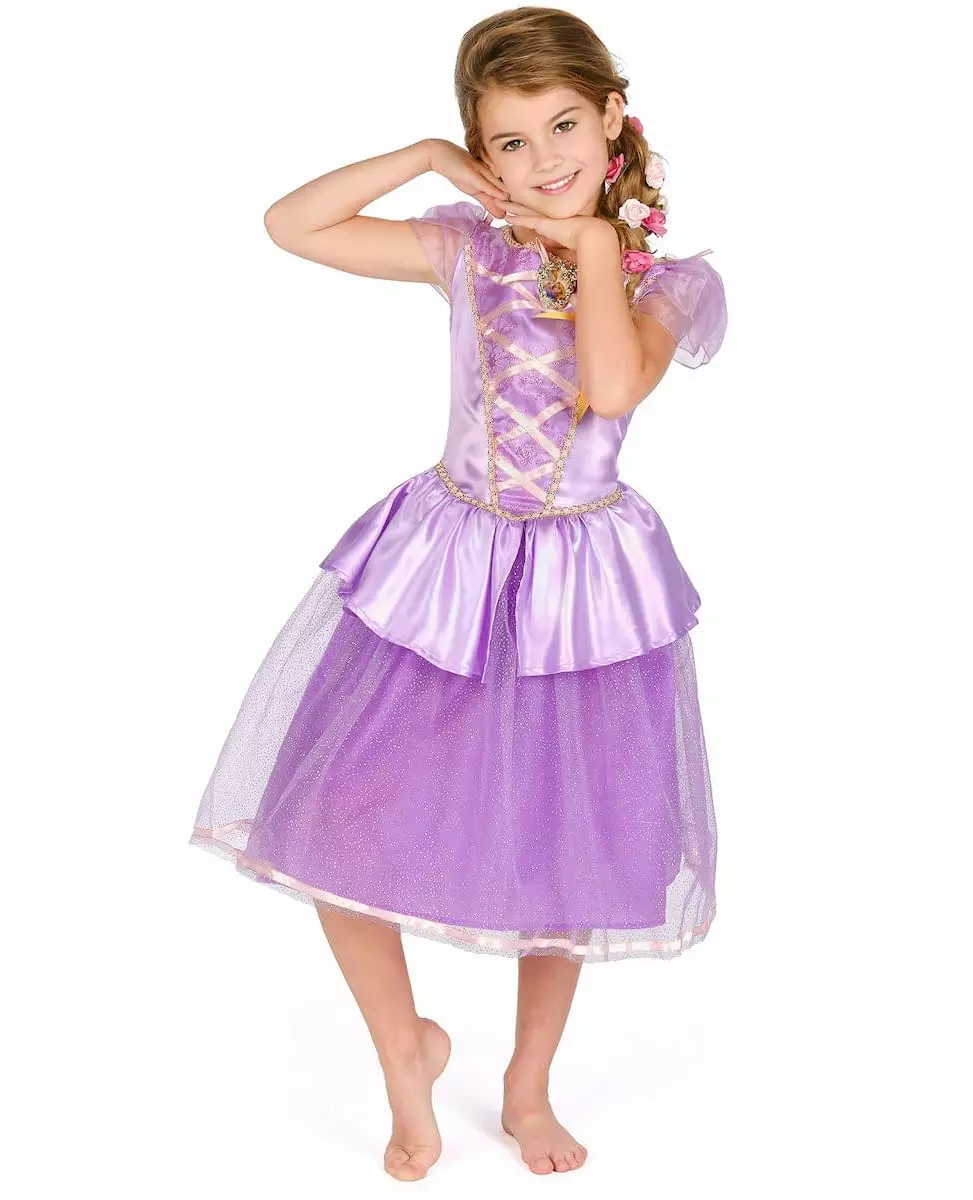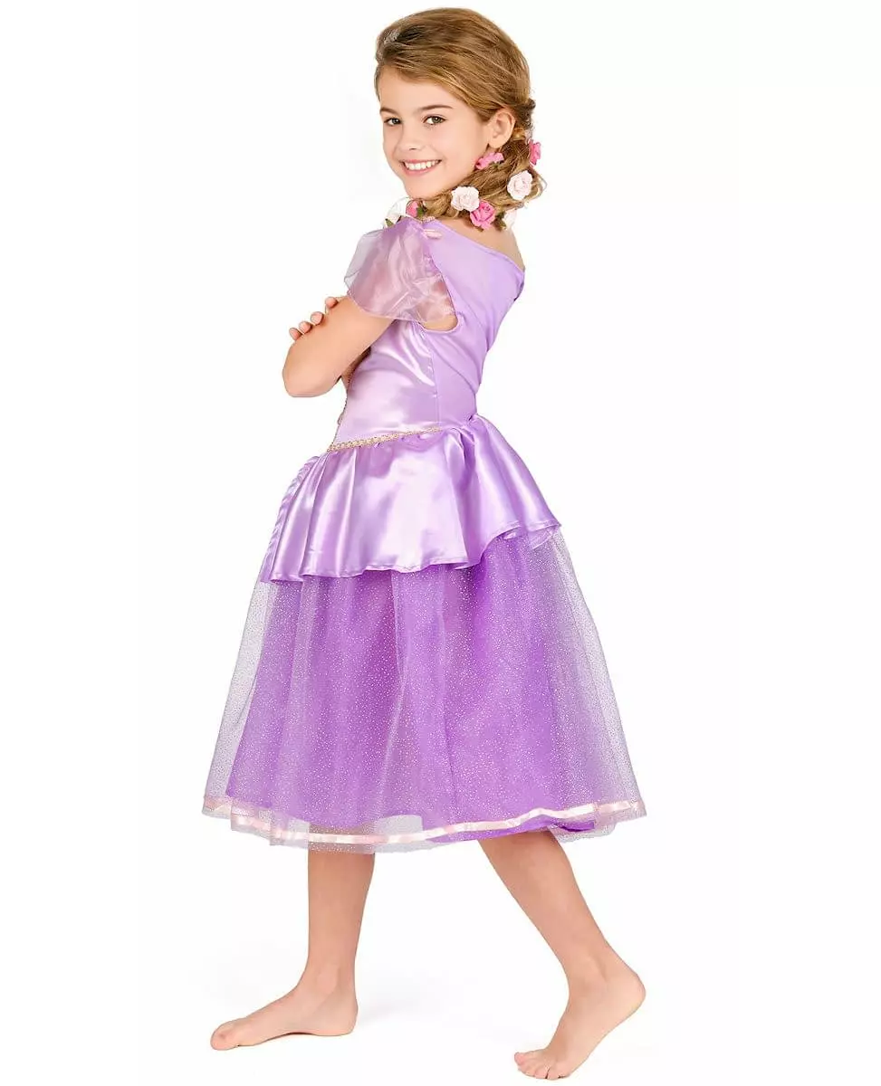 Launch your hair like the famous princess Rapunzel! This deluxe Rapunzel™ costume for girls is officially licensed by Disney™. It includes a dress.     The costume dress is made of purple satin fabric. The top of the dress is decorated with a white and gold bodice and a portrait of the famous Rapunzel™. The waist will be elastic.   The sleeves will be slightly puffy, in purple tulle.     The bottom of the dress, puffy, is covered in purple tulle including a multitude of sequins.     This costume of the famous princess Rapunzel will be ideal for for Carnival or for your child's birthday! Accessories included: 1 Dress Material: 100% Polyester Care: Hand wash