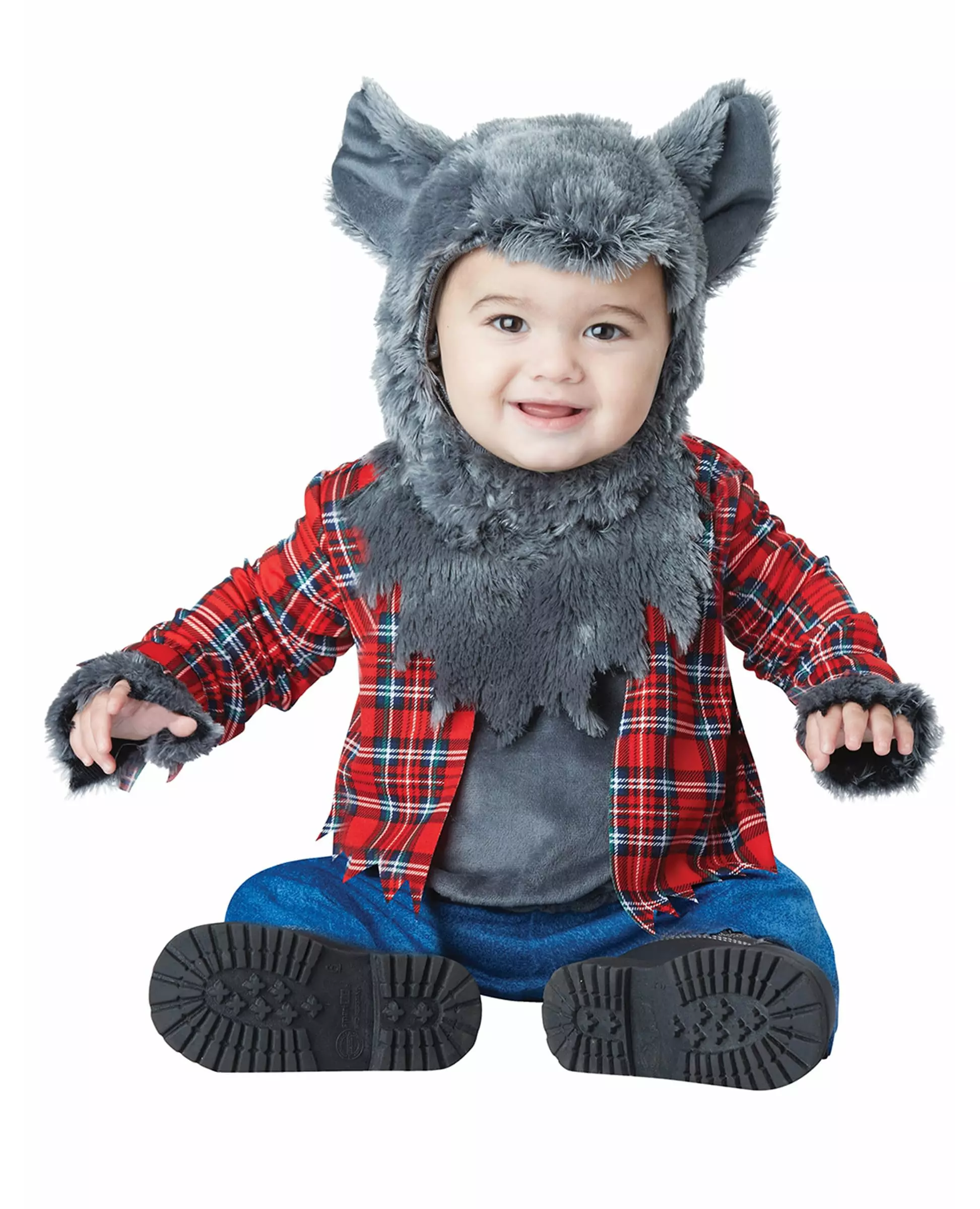 Baby werewolf costume Watch out for the full moon with this baby werewolf costume. This werewolf costume is for babies, it includes the shirt with faux fur torso, the faux fur hood and the pants (shoes are not included) Child costume includes: Shirt, Hood, Pants