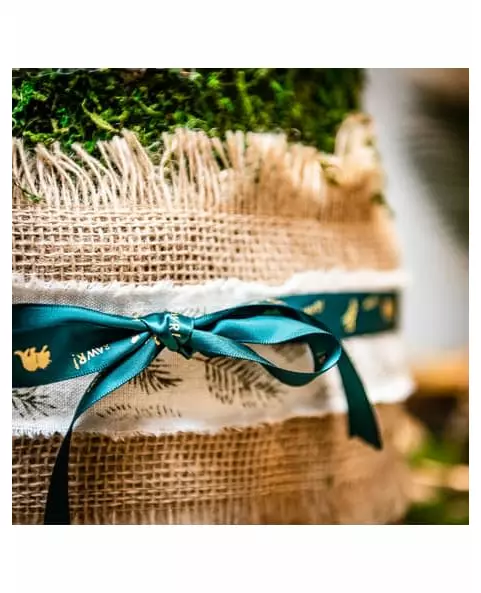 Roar with this dinosaur ribbon! This satin ribbon is duck green in color. It is flocked with alternating dinosaurs and "Rawr!" in gold. It measures approximately 1.9 cm wide and 10 m long. This ribbon will allow you to personalize your cards, invitations or even place markers for a birthday party. Accessories included: 1 Ribbon Material: 100% Polyester