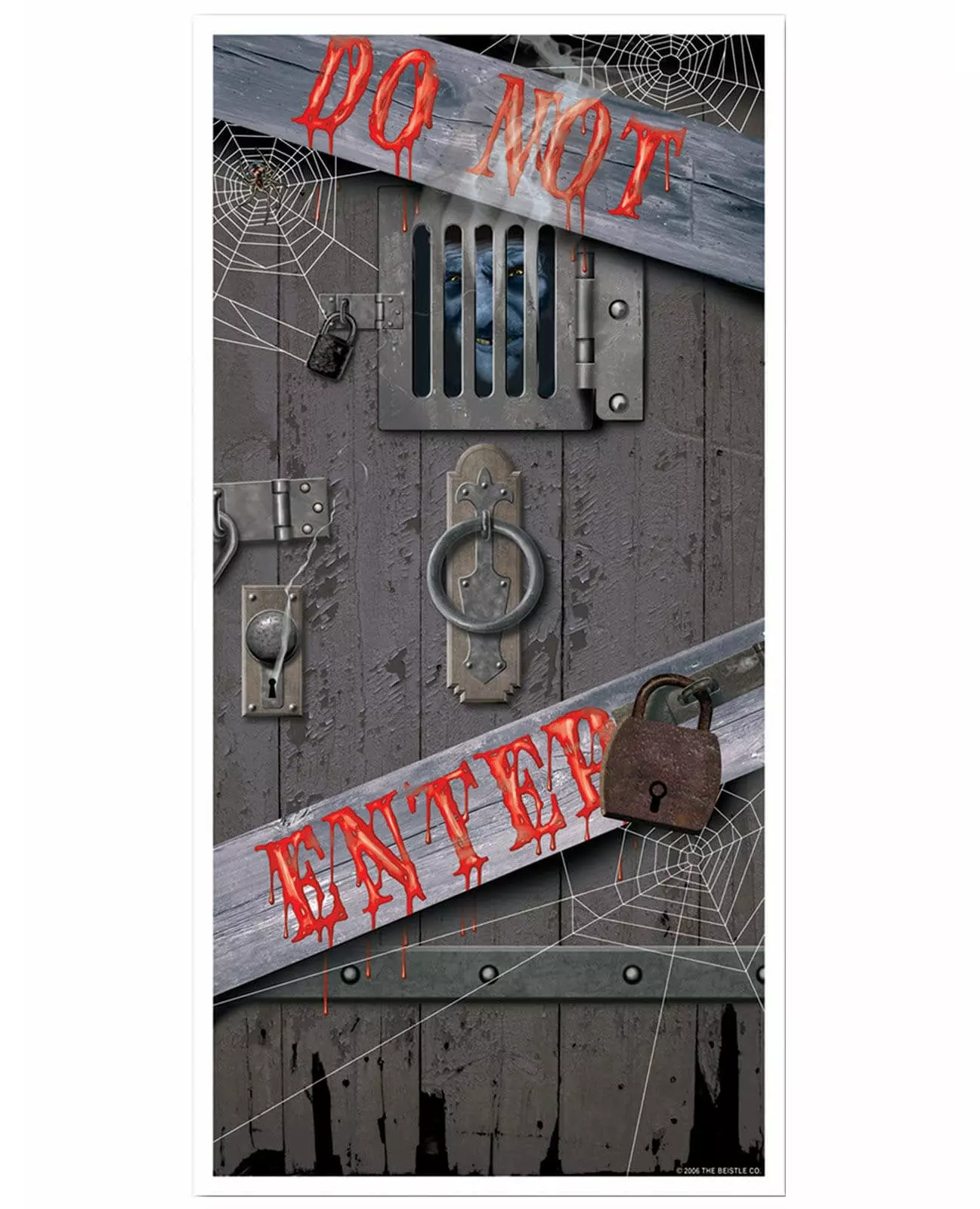 But what's going on behind this door? This door decoration measures approximately 76x152cm. This creepy door poster shows an old wooden door full of cobwebs and locks. The inscription "Do not enter" warns us. Against what? An old man with a big smile and a scary look locked behind this door! This high-quality door decoration, combined with some bloody and terrifying accessories will be perfect to create a heavy and gloomy atmosphere during your Halloween evenings! Accessories included: door poster Measurements: 76x152cm