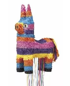 fun activity for the whole family! This item is a piñata that represents a multicolored donkey. Its dimensions are approximately 56 cm x 36 cm. How to play: Fill your piñata with candy, confetti, and small toys where it says you can fill it and hang it. Blindfold yourself and hit it with a piñata stick until it breaks to release the contents (the goal is to destroy the piñata, so you won't be able to rip it open by pulling the donkey's tail). This Piñata will be ideal for livening up your children's tea parties and other birthdays. The colors of the piñata are random. Accessories included: 1 Piñata Material: Cardboard, paper