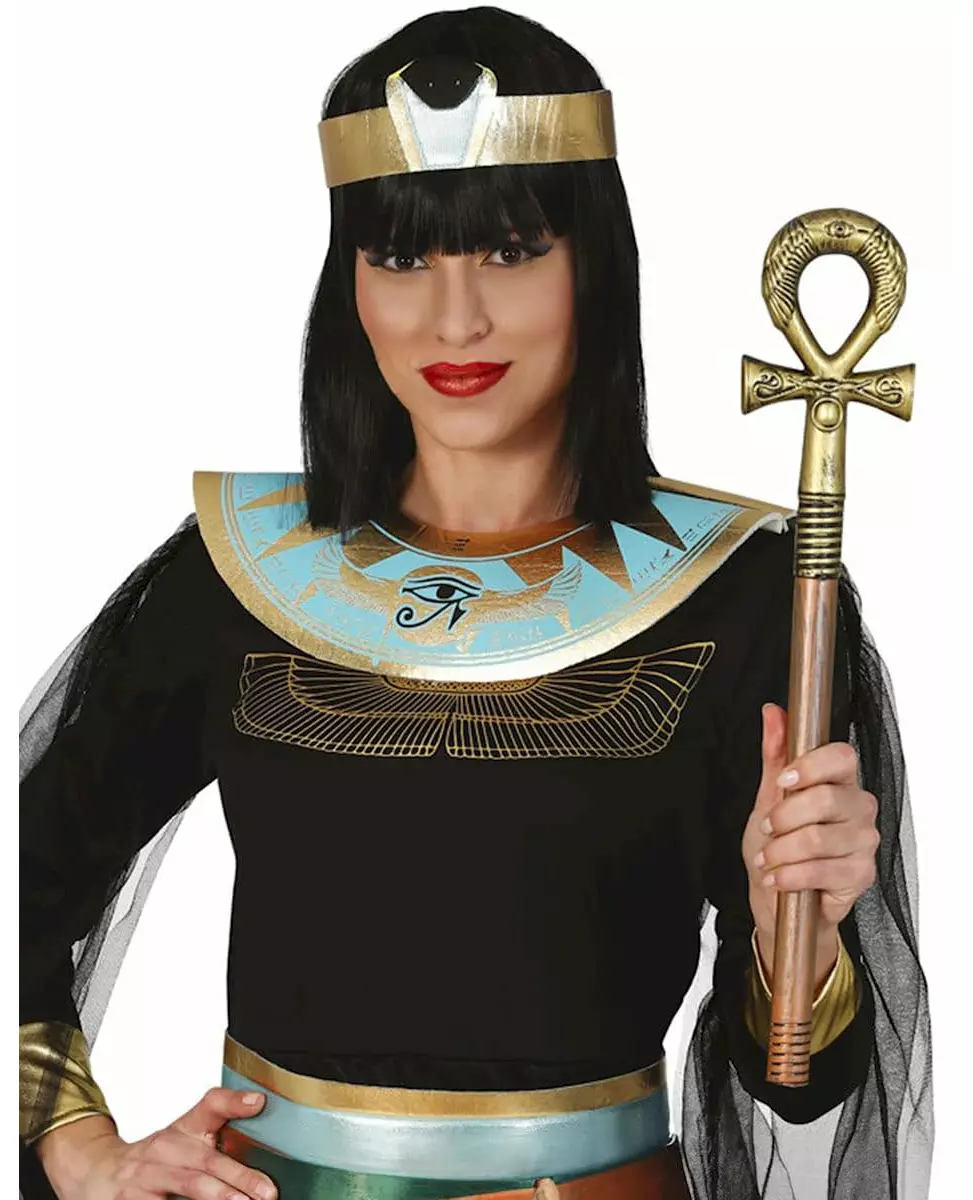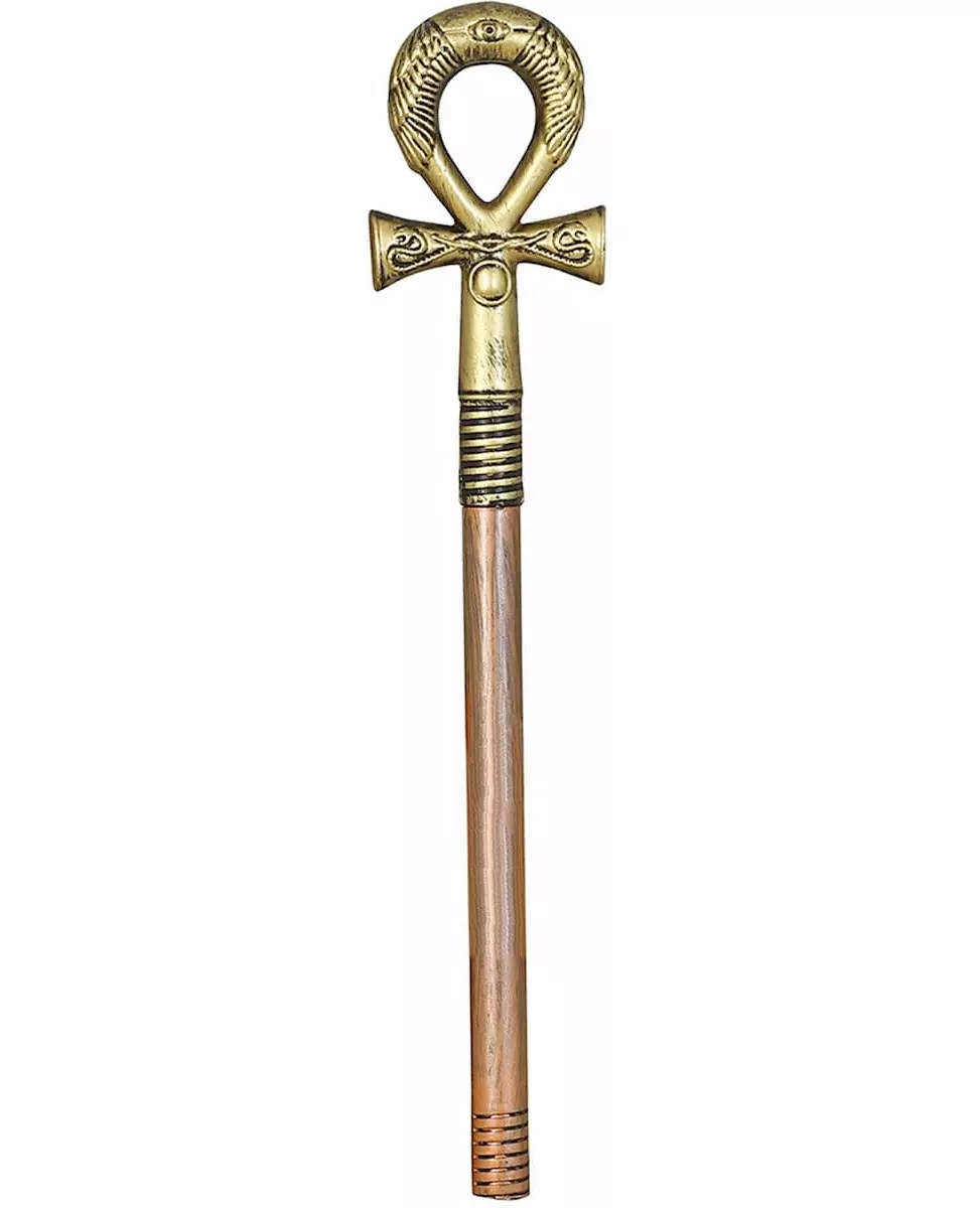 The key to life! This Egyptian Ankh scepter measures approximately 50 cm in length. It consists of a handle with an Ankh cross on top. The whole thing rests on a golden color. This accessory will be perfect to complete an Egyptian-themed costume or for your New Year's Eve! Accessories included: 1 Scepter, Material: Plastic,