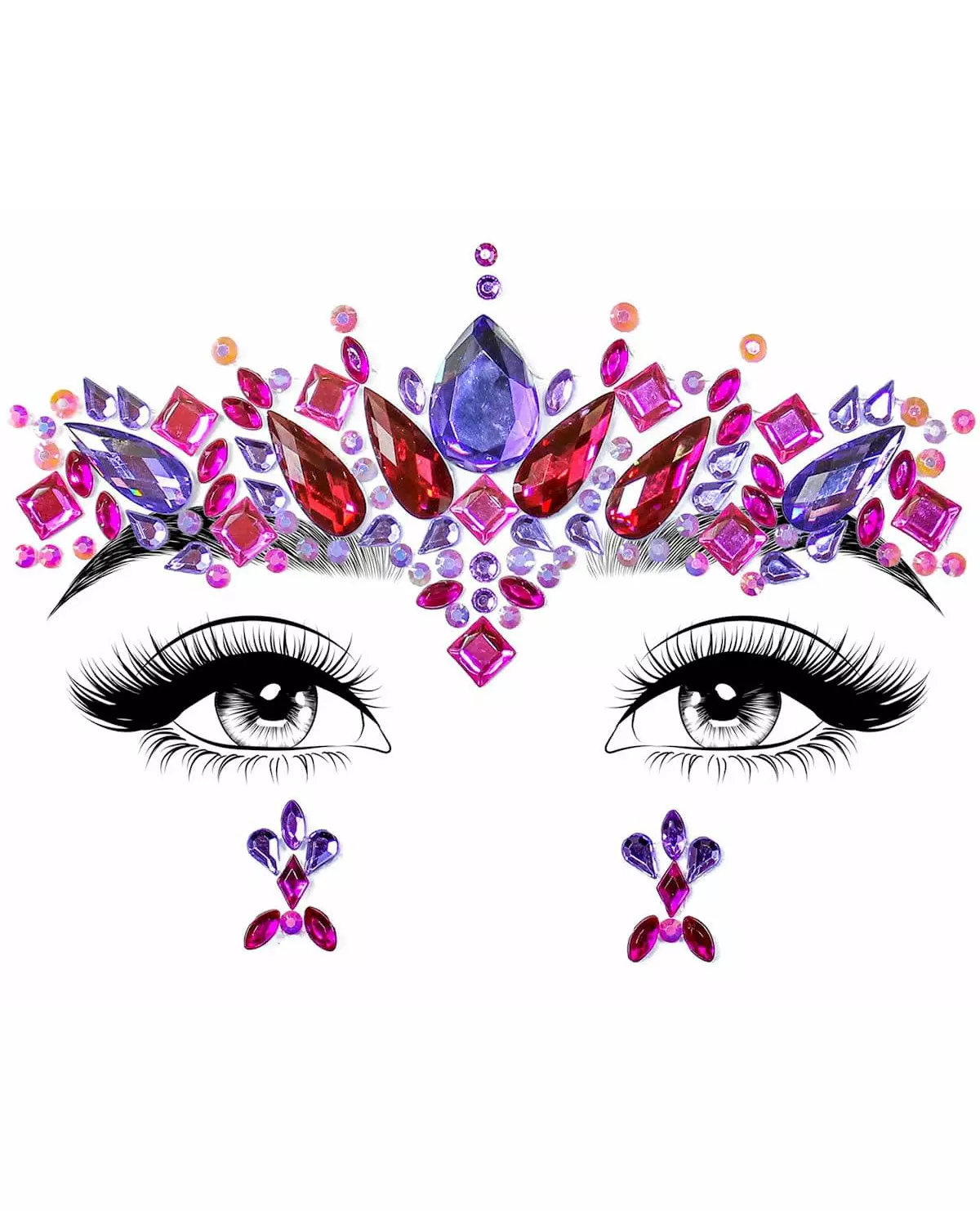 Enhance your look with this face jewel. These face jewels are made of faux stones and rhinestones. They come in shades of purple, pink, and red. Delivered on a transparent film, these face jewels are adhesive. They will be perfect for creating incredible makeup in just a few seconds. Accessories included: Face jewels
