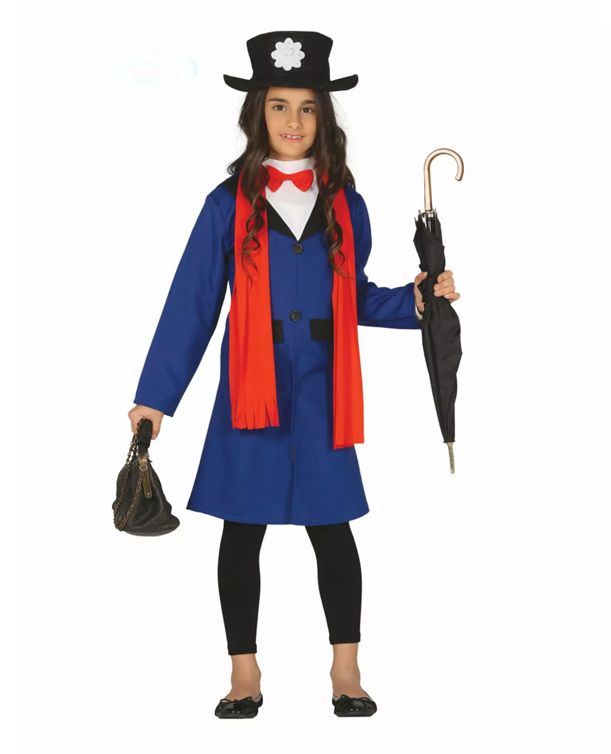 Step into the shoes of the famous nurse This English nurse costume for girls consists of a jacket, a scarf and a hat (bag, umbrella, pants and shoes not included). The long jacket is dark blue with a black collar. It is completed with a long red scarf. A hat adds the finishing touch to this costume. It is black with a flower on the front. This English nurse costume will be perfect for Carnival or a fancy dress party. Accessories included: Jacket Scarf Hat Material: 100% Polyester Care: Hand wash