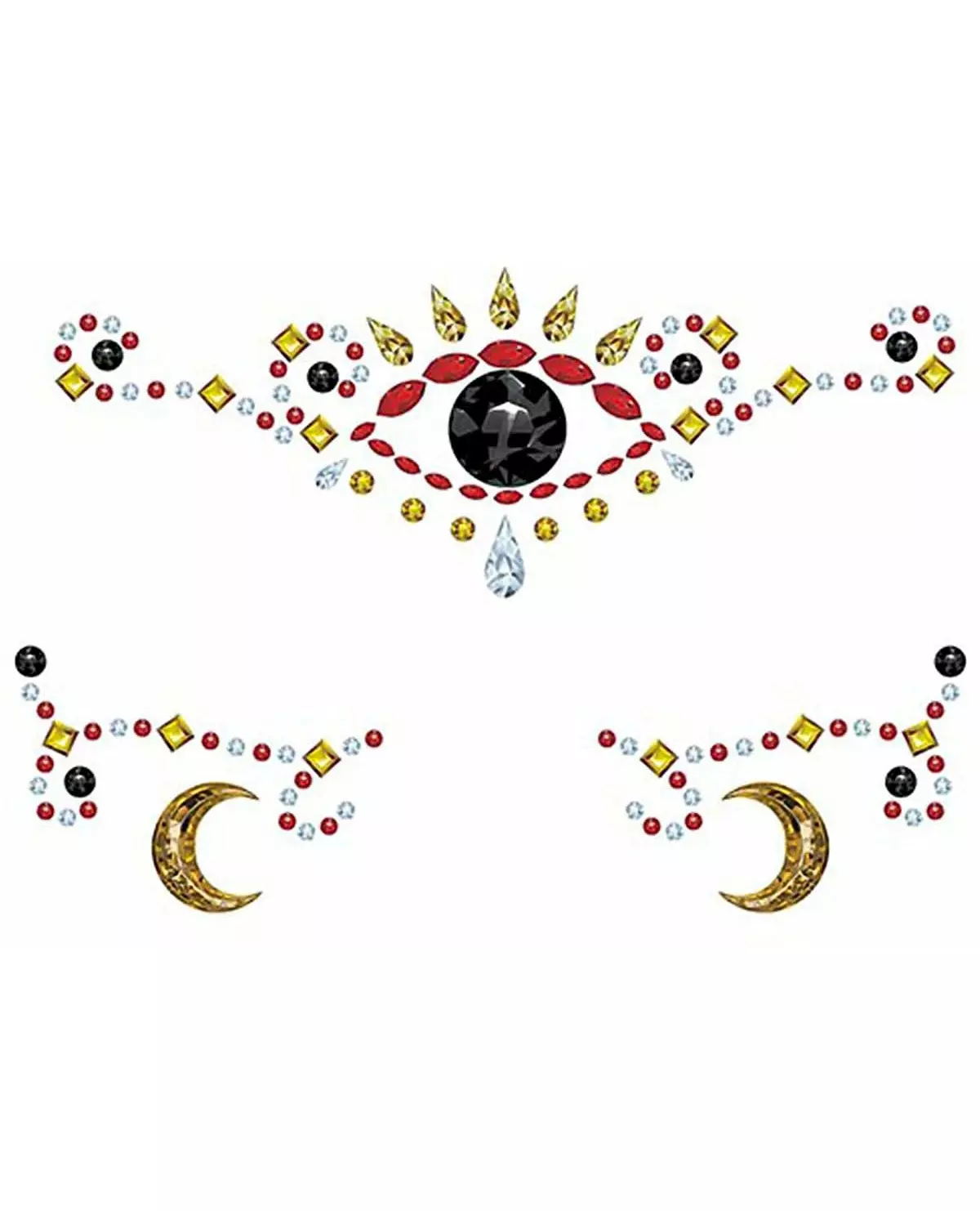 Transform yourself into a psychic for Halloween! This pack contains adhesive face jewels inspired by the world of psychics. It includes several elements: a captivating central eye, golden crescent moons, and sparkling gemstones for a mystical and captivating look. These temporary jewels are ideal for completing your psychic outfit for Halloween or for your next costume party! Ingredients: NC. Accessories included: Adhesive jewels