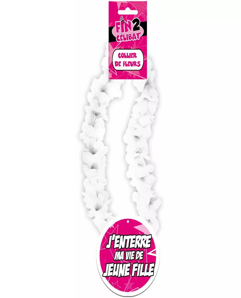 I'm having a bachelorette party! This Hawaiian necklace is made of fake white flowers. It has a round pink sticker with the words "I'm having a bachelorette party". This necklace will be perfect to bring some fun to your bachelorette party!. Accessories included: 1 Necklace Care: Hand wash