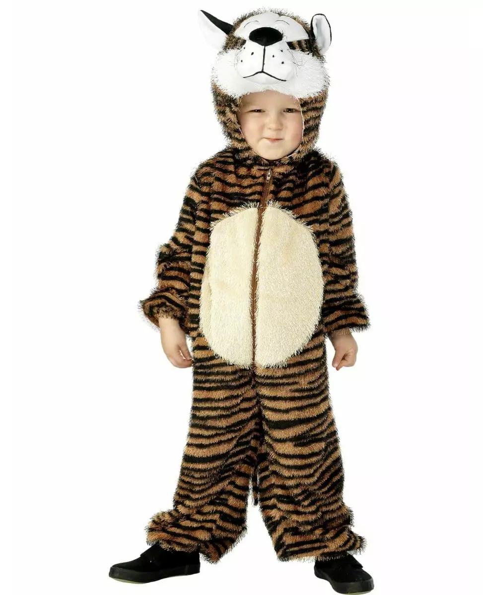 Funny tiger costume for children Very soft. This tiger costume for babies consists of a jumpsuit with an integrated hood (shoes not included) Children's costume includes: Jumpsuit
