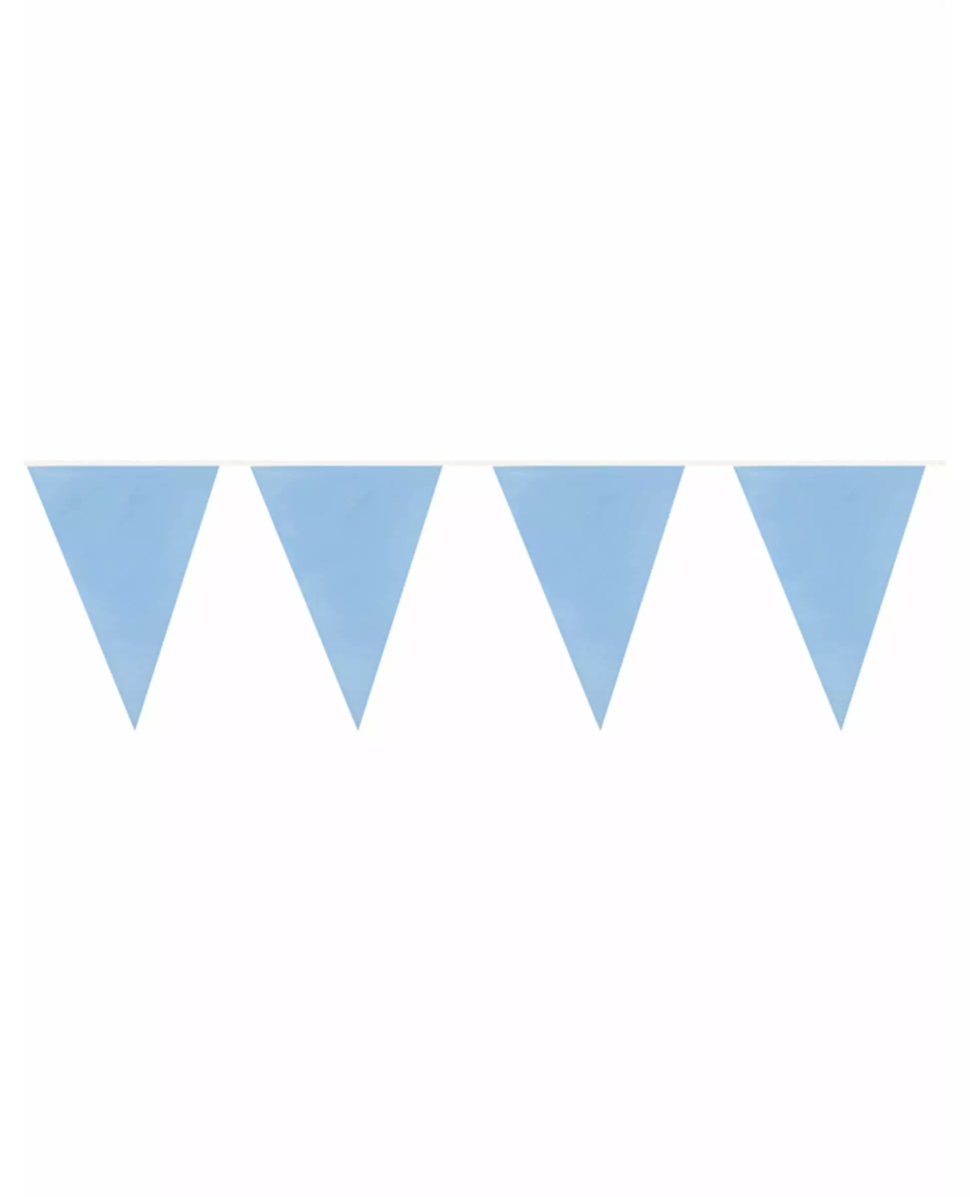 summer decoration! This garland of 20 pennants is made of plastic. It is composed of a white strip on which the 20 plain sky blue pennants of 30 x 20 cm are sewn. It can also be cut to cover more space. This garland of pennants will perfectly complement an interior or exterior decoration for a summer party!. Accessories included: 1 garland of pennants Material: Plastic