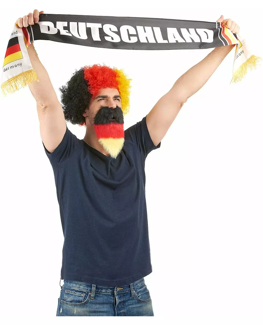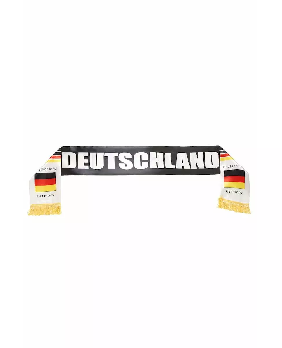 Support your favorite team! This scarf is in the colors of Germany. The inscription "DEUTSCHLAND" is printed in the middle in capital letters on a black background. It measures approximately 128 cm and two small flags with the image of the country are present at the ends as well as small yellow fringes. This scarf will be perfect to support your team during the Euro or for any other sporting event. Accessories included: Scarf Material: 100% polyester Care: Hand wash
