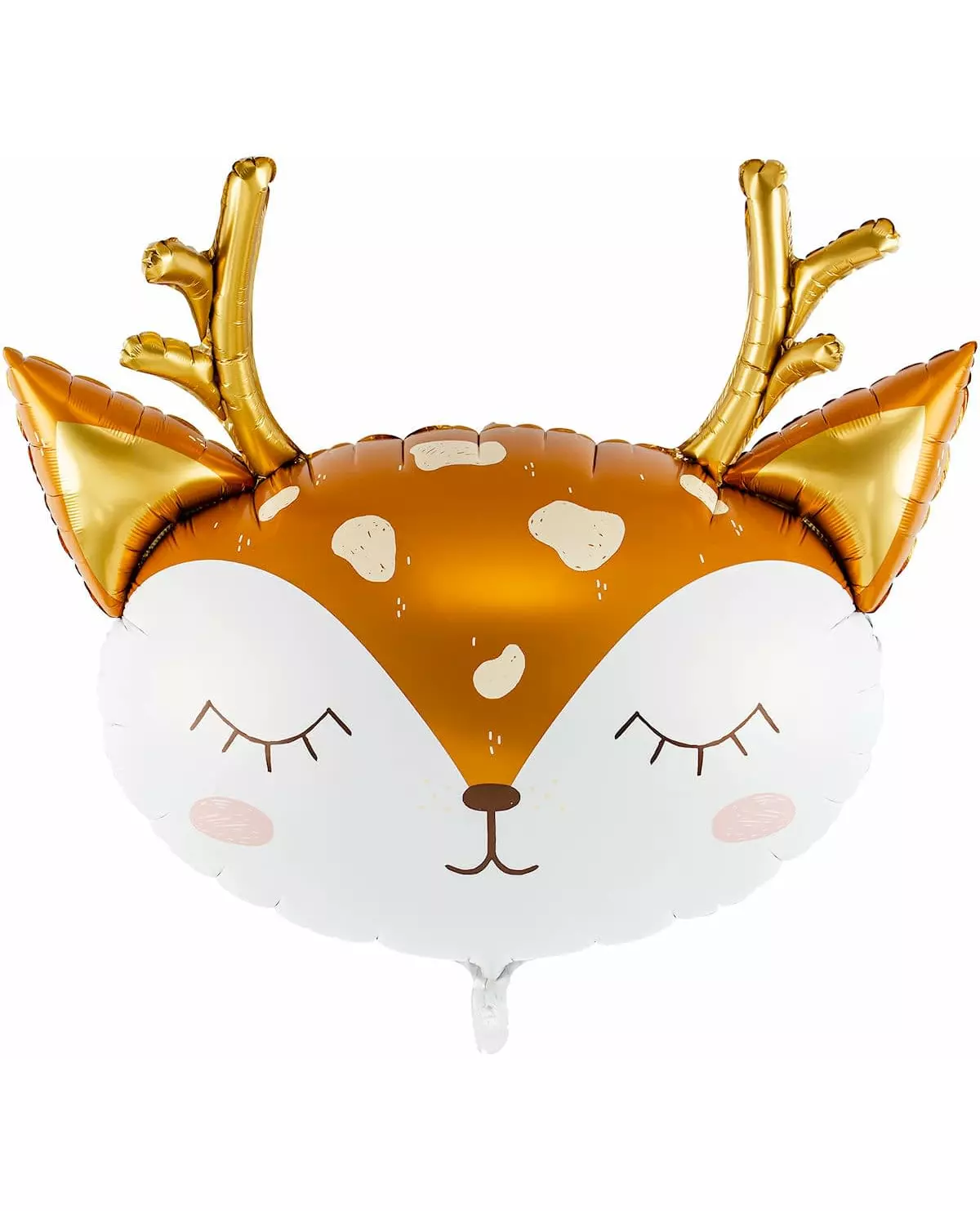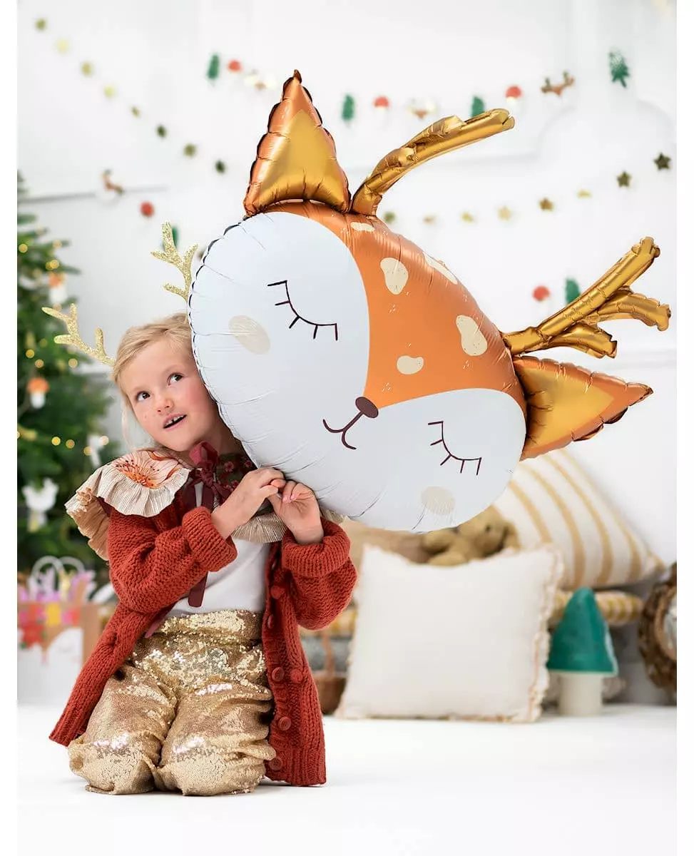 cute deer balloon for a forest decor! This giant balloon measures approximately 73 x 64 cm. It represents a red and white deer head. Made of aluminum, you can inflate it with air or helium to make it fly. This deer balloon will be ideal to complete your Christmas decoration with a forest atmosphere!. Accessories included: 1 Giant balloon Material: Aluminum Care: Do not wash