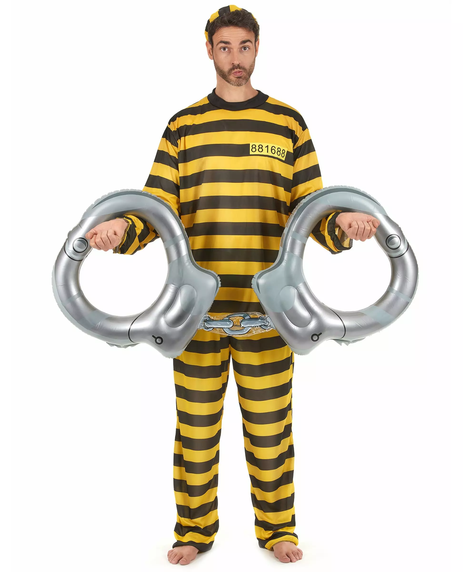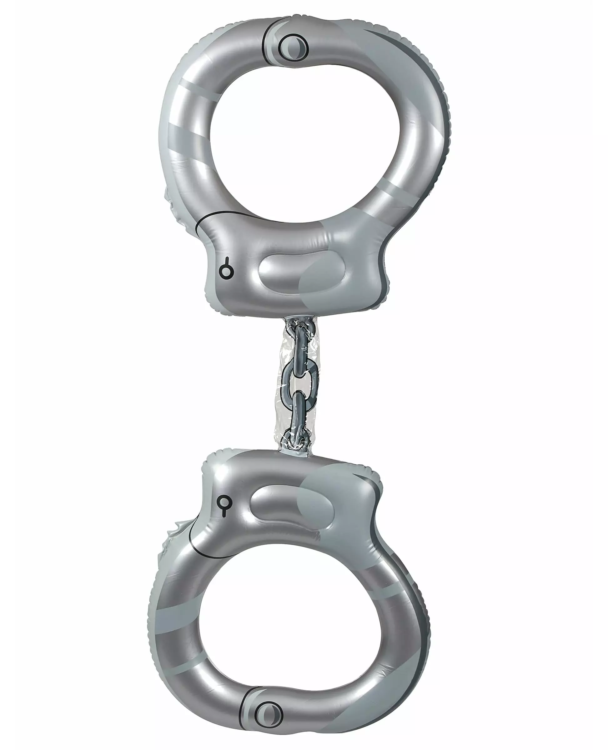 Maxi size! This pair of giant inflatable handcuffs is gray in color. The 2 handcuffs are connected to each other by an inflatable chain on which the links are printed. The pair of handcuffs inflates separately thanks to 2 valves equipped with a non-return valve. This accessory will complete your police, prisoner or other themed costumes in a humorous way during your party moments. Accessories included: 1 Pair of Inflatable Handcuffs
