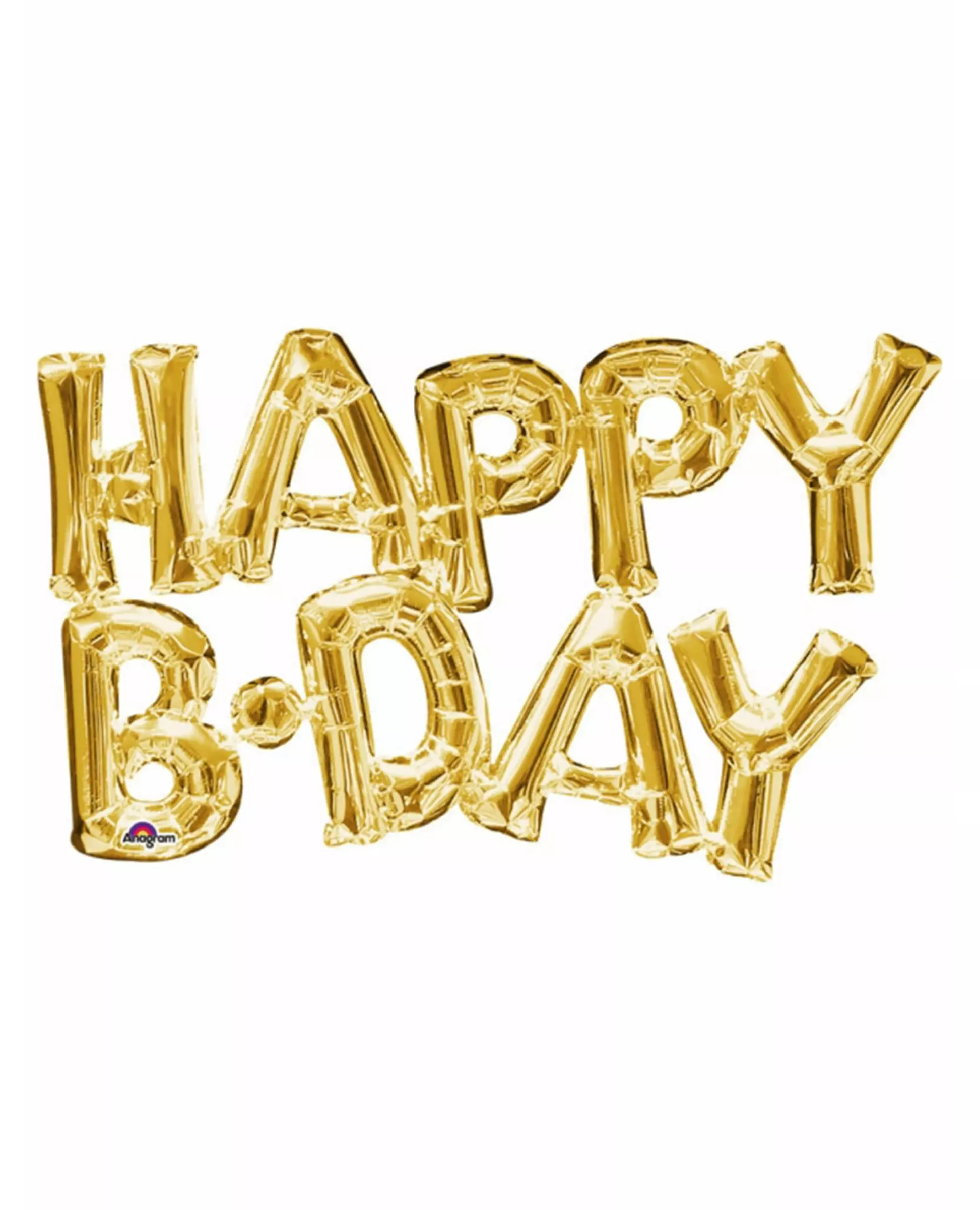 Happy B-Day to you! This golden balloon represents the inscription "HAPPY B.DAY". It is made of aluminum and measures 76 x 48 cm. This balloon can be inflated with air. Inflation with helium is unnecessary because given the size of the balloon, it will not be able to fly. An automatic closing system prevents the air from escaping once inflated, which will facilitate inflation. This Happy Birthday balloon will be perfect to complete your birthday decoration! Accessories included: Balloon Material: Aluminum