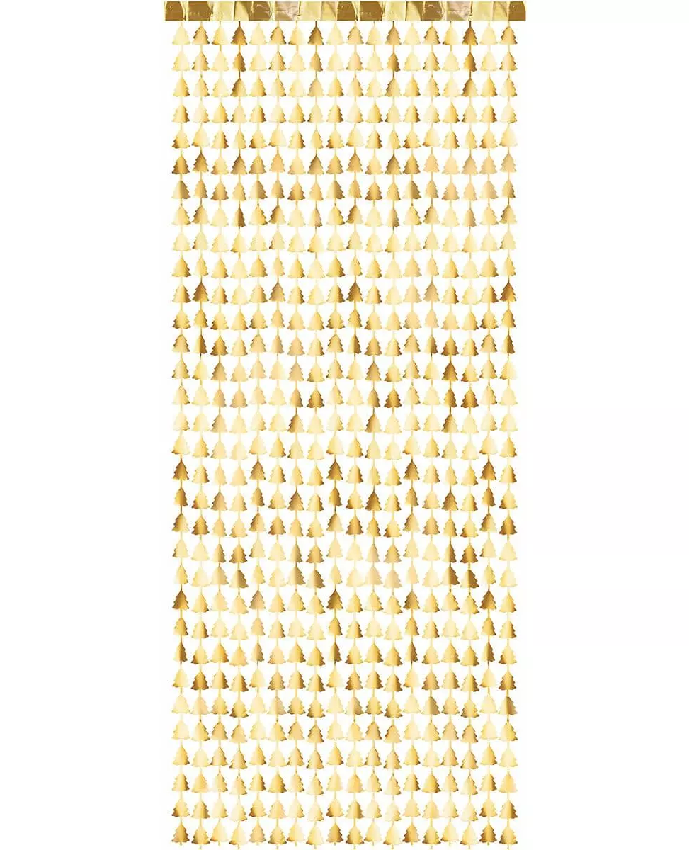 Sparkling fir trees to dress up your Christmas decor! This sparkling thread curtain measures approximately 245 cm high and 100 cm wide. It is made up of small golden fir trees. Make your home sparkle for the Christmas holidays with this fir tree curtain! Accessories included: 1 Curtain