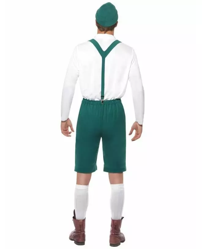 Cheers! This Bavarian costume for men consists of a top, pants, and a beret. The top is loose-fitting with long sleeves and a small ribbon tie at the collar. The short, green fleece-like overalls with elastic at the waist and adjustable straps are decorated with small floral patterns. A matching beret also completes this outfit. This Bavarian costume for men is ideal for a themed party with friends, a fancy-dress birthday party, or for the famous Oktoberfest! Accessories included: Top Pants Beret Material: 100% polyester Care: Dry clean