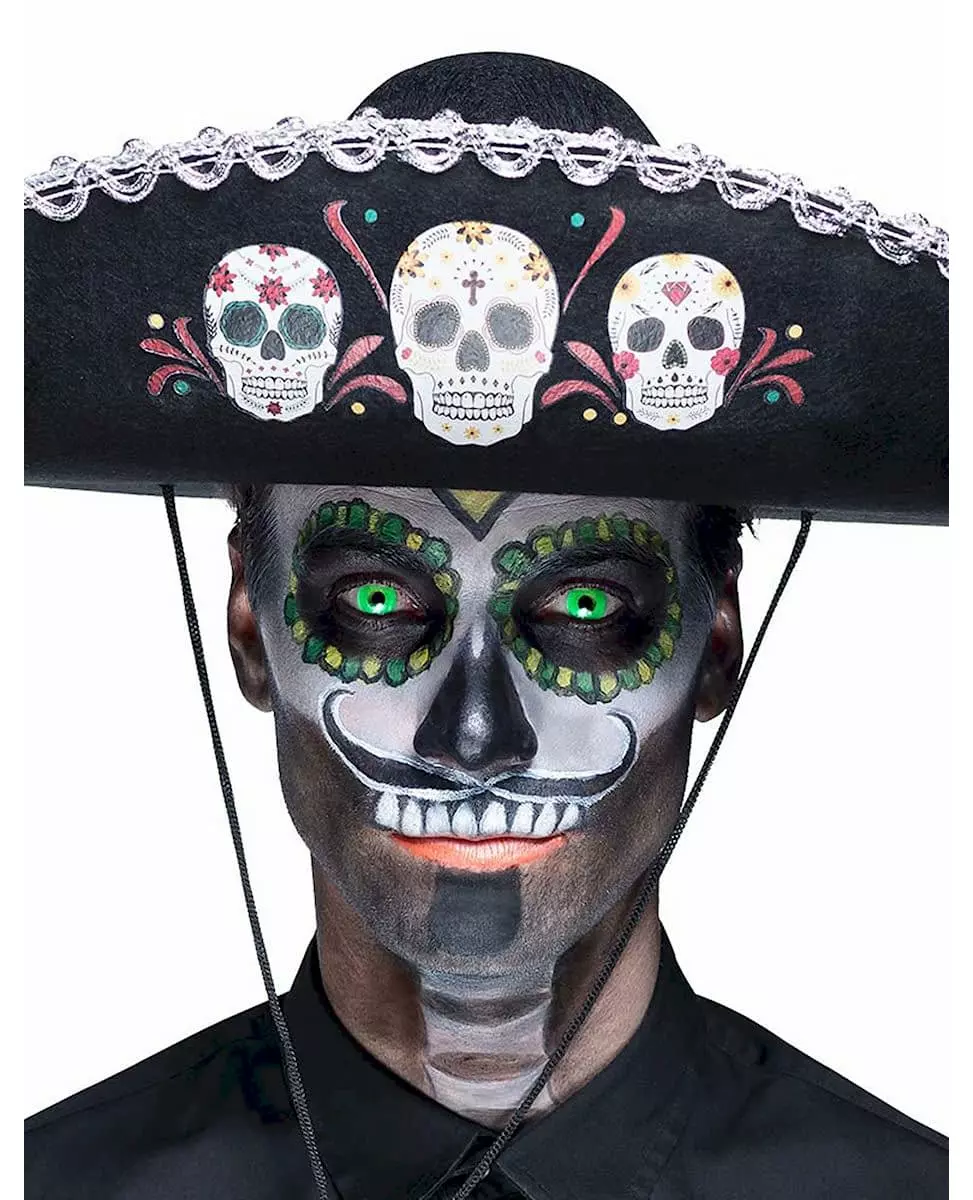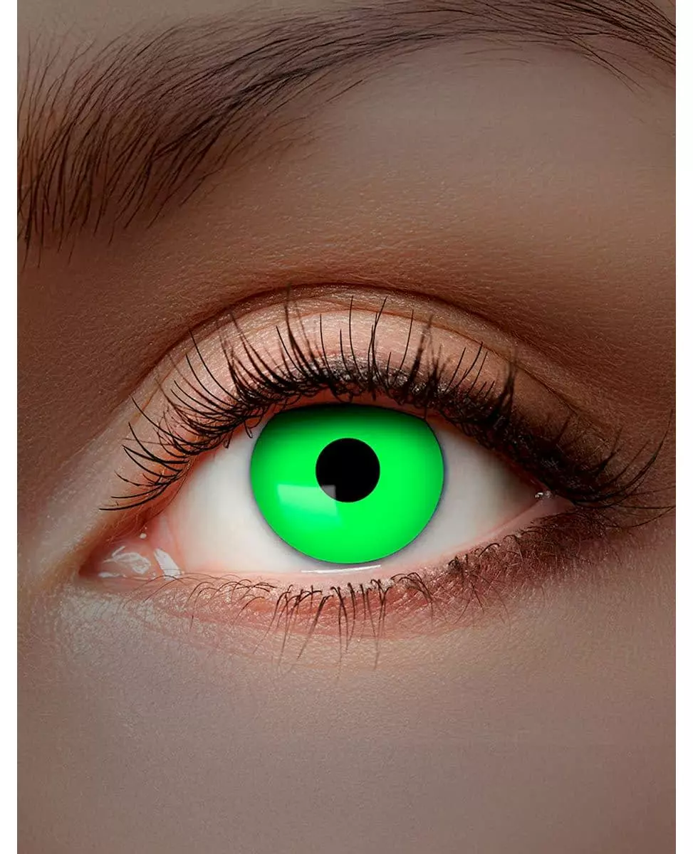Show off a bright look with these green lenses These adult novelty contact lenses are green in color. These green lenses measure approximately 14.5 mm in diameter and 8.6 mm in curve. These lenses meet CE0120 - ISO9001 standards and can be used for 1 month after opening. Before use, consult the instructions for use included with the lenses. These lenses look like normal light green lenses in daylight, but will appear brighter when worn under UV light. These green UV lenses will be perfect for not going unnoticed during your next evenings with friends. Accessories included: 2 Sterilized cosmetic lenses Material: HEMA 58%, 42% physiological serum, 0.9% saline solution