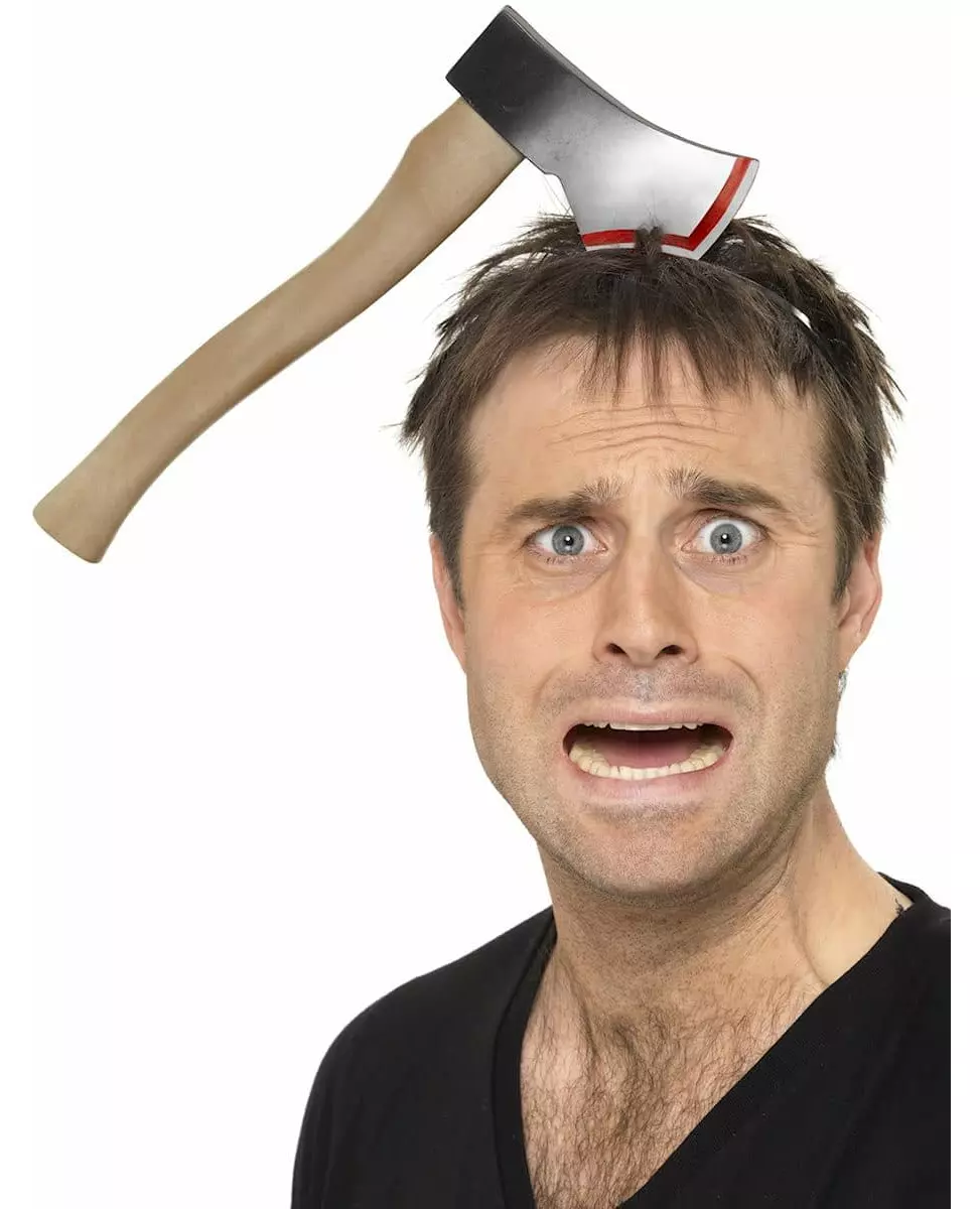 The axe pierces the skull for even more realism! This Halloween axe headband measures approximately 10 cm in diameter. It represents a plastic axe with fake blood at the tip of the blade. This weapon is attached to a headband and gives the impression that it pierces your skull for even more realism. This accessory is perfect for Halloween parties or during your horror-themed parties or others. This headband runs small. Material: 100% Polyester Care: Hand wash