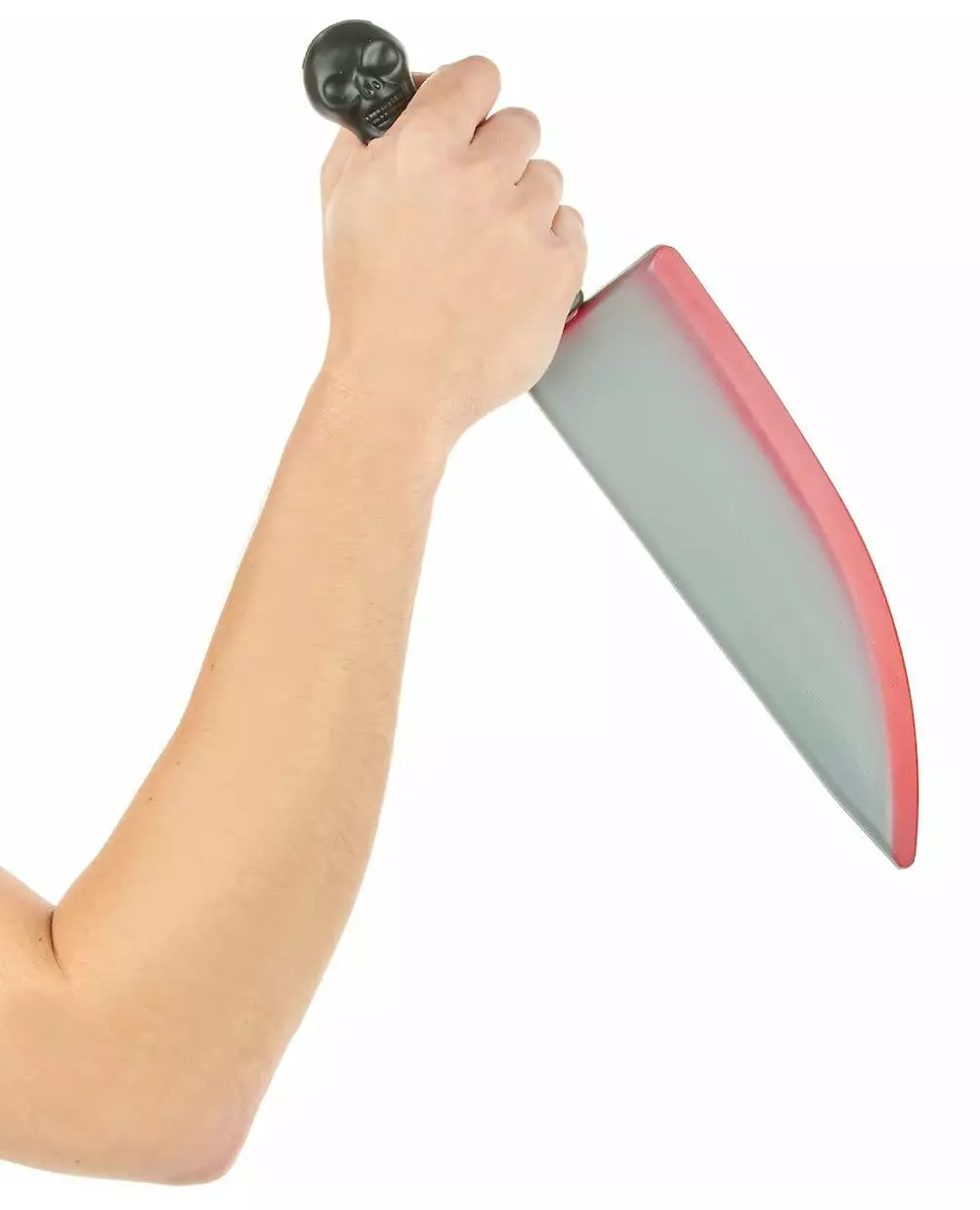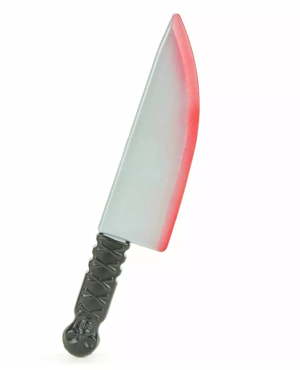 Arm yourself with a bloody knife to scare your friends on Halloween night. This bloody plastic knife measures approximately 38 cm long. The handle is black and silver, for a metallic effect. It is decorated with a skull and bones in relief. The gray blade is stained with fake blood. This accessory will perfectly complete a monster or killer costume for Halloween. Accessories included: Knife Material: Plastic Care: Hand wash
