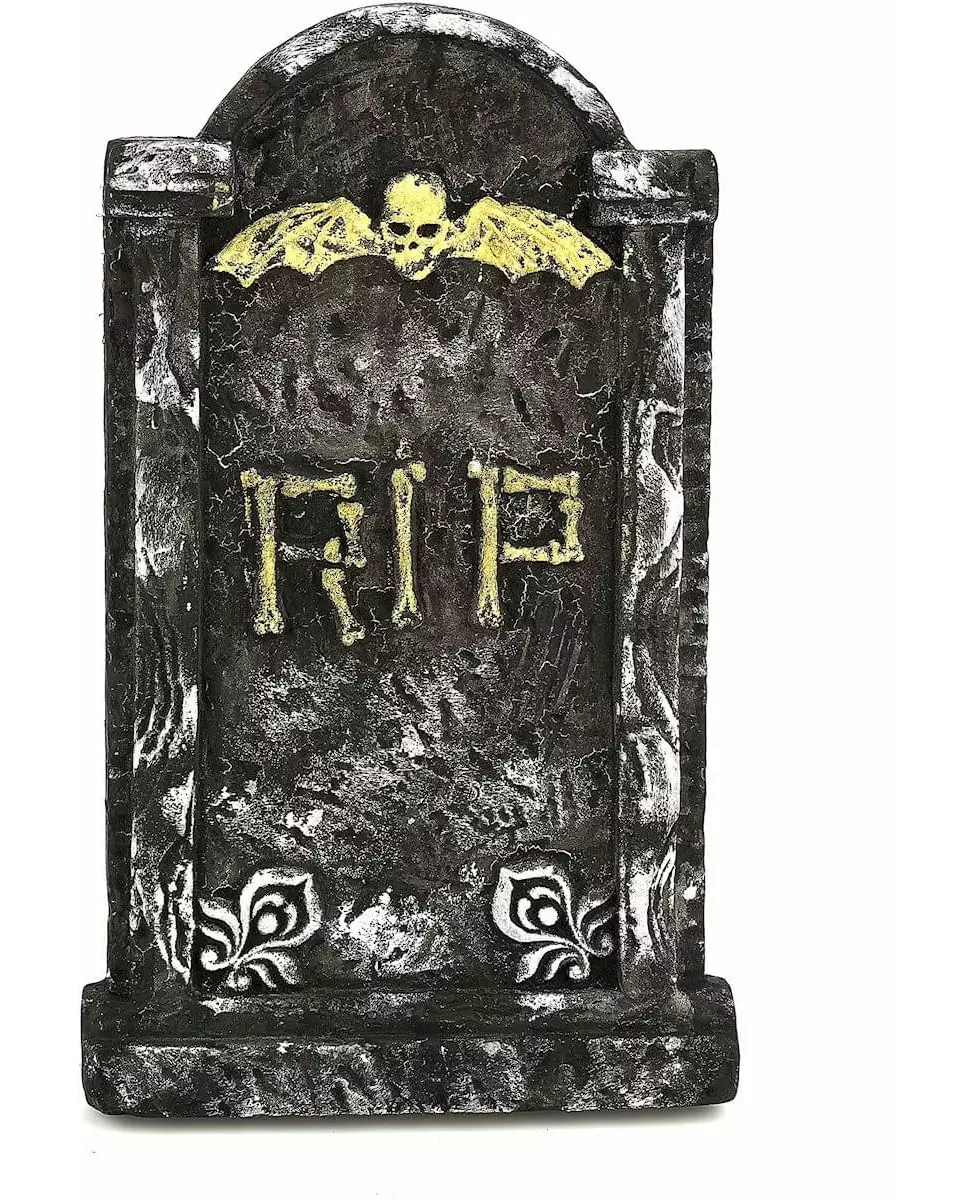 funereal decoration! This Halloween tombstone decoration measures approximately 59 cm in height and 35 cm in width. Made of polystyrene, this tomb measures 5 cm at its widest point. The paint evokes the appearance of stone. The word "RIP" only adds more horror. Perfect for decorating both indoors and outdoors during your Halloween party!. Accessories included: Tombstone Material: Polystyrene