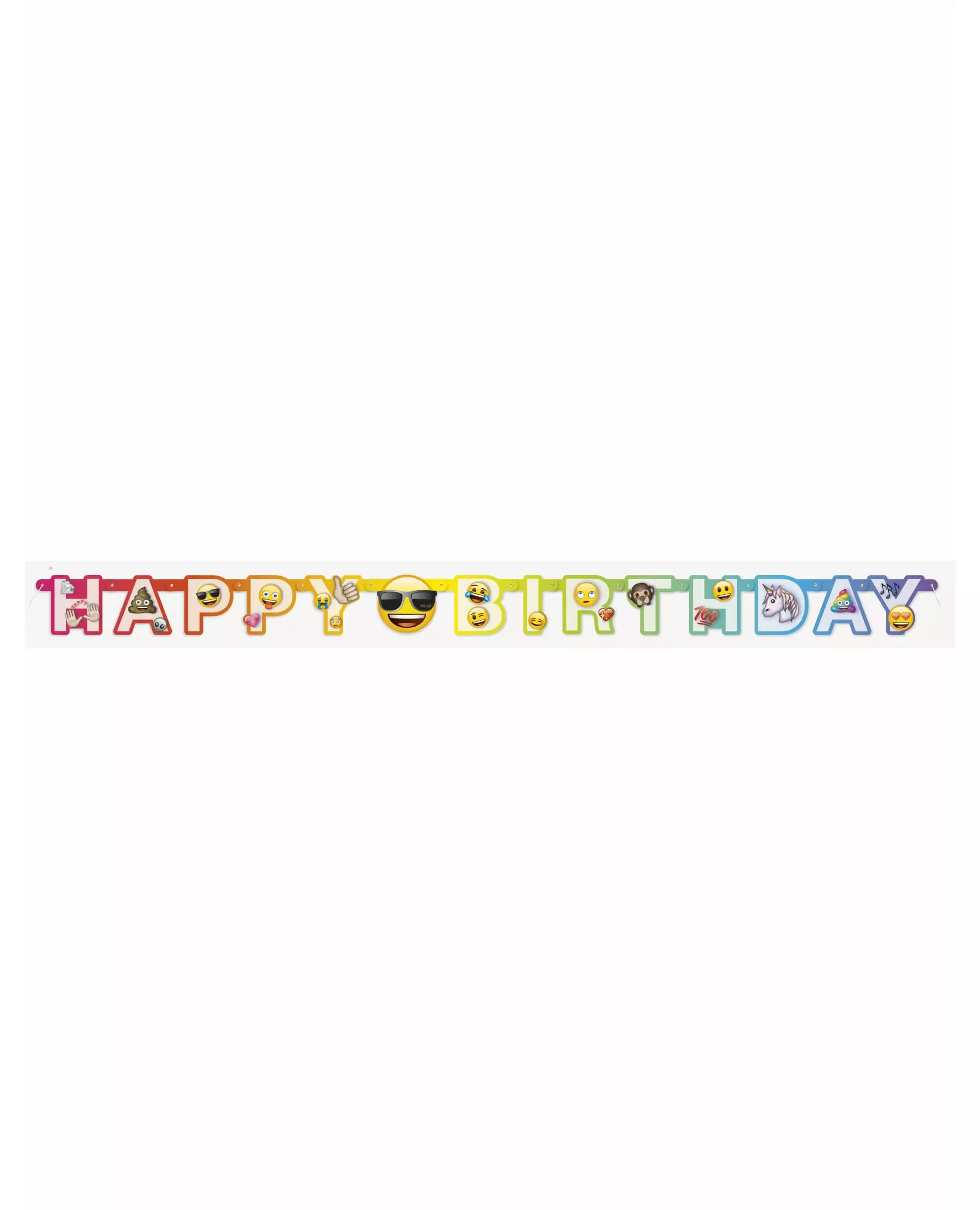 fun and colorful birthday decoration! This cardboard garland measures approximately 1.8 m in length. Officially licensed by Emoji™, it represents the message "Happy Birthday" in rainbow-colored letters. Emoji are also present along the entire length. It will be perfect to complete your birthday decoration. Accessories included: 1 Garland Material: Cardstock