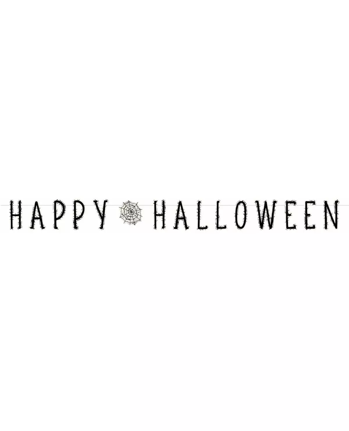 The Halloween Spider! This Happy Halloween garland measures approximately 180 cm. It is black and decorated with a spider web. The letters form the message "Happy Halloween". It comes with a string for easy hanging. This spider web garland will be perfect for adding the finishing touch to your Halloween decorations! Accessories included: 1 garland