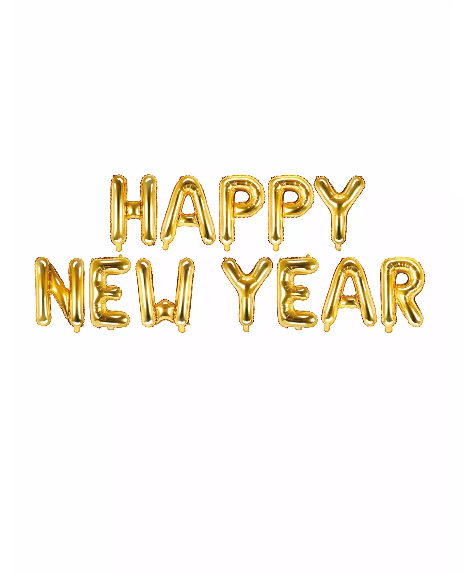 Decorate your room for New Year's Eve! These Happy New Year gold letter foil balloons measure 370 x 35 cm when inflated. The set includes 12 balloons that represent the inscription "Happy New Year" and are gold in color. They are inflated with air using a straw (not included). These balloons will perfectly complete your New Year's Eve decoration! Accessories included: 1 Balloon Material: Aluminum