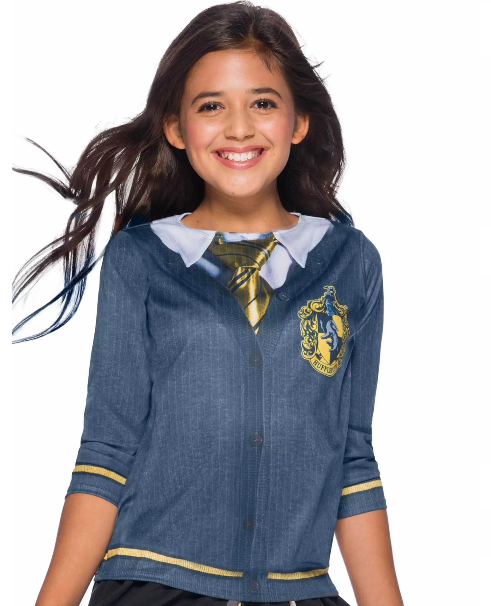 You're at Hufflepuff School! This officially licensed Harry Potter Hufflepuff printed T-shirt is for children. This long-sleeved top features the print of the outfit of young wizards belonging to the Hufflepuff house. This print is characterized by a gray button-up vest over a white shirt and a yellow and blue striped tie. The Hufflepuff house crest is featured on the chest. This Hufflepuff T-shirt will be ideal for completing a wizard-themed costume at for a birthday or for Carnival! Accessories included: Long-sleeved printed top Material: 100% Polyester Care: Hand wash