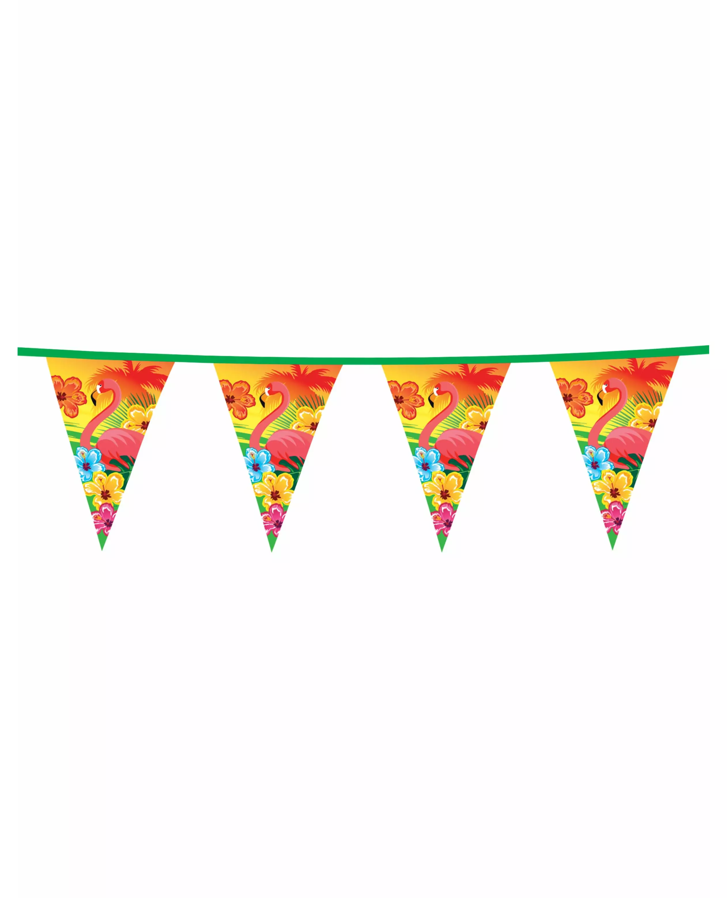 meters long! This bunting with a flamingo print measures approximately 6 meters long. Each pennant is made of plastic and measures approximately 30 x 20 cm. They are printed with a flamingo surrounded by multicolored flowers. This element will be ideal for decorating your room during a costume event or on the Hawaiian theme. Accessories included: Garland