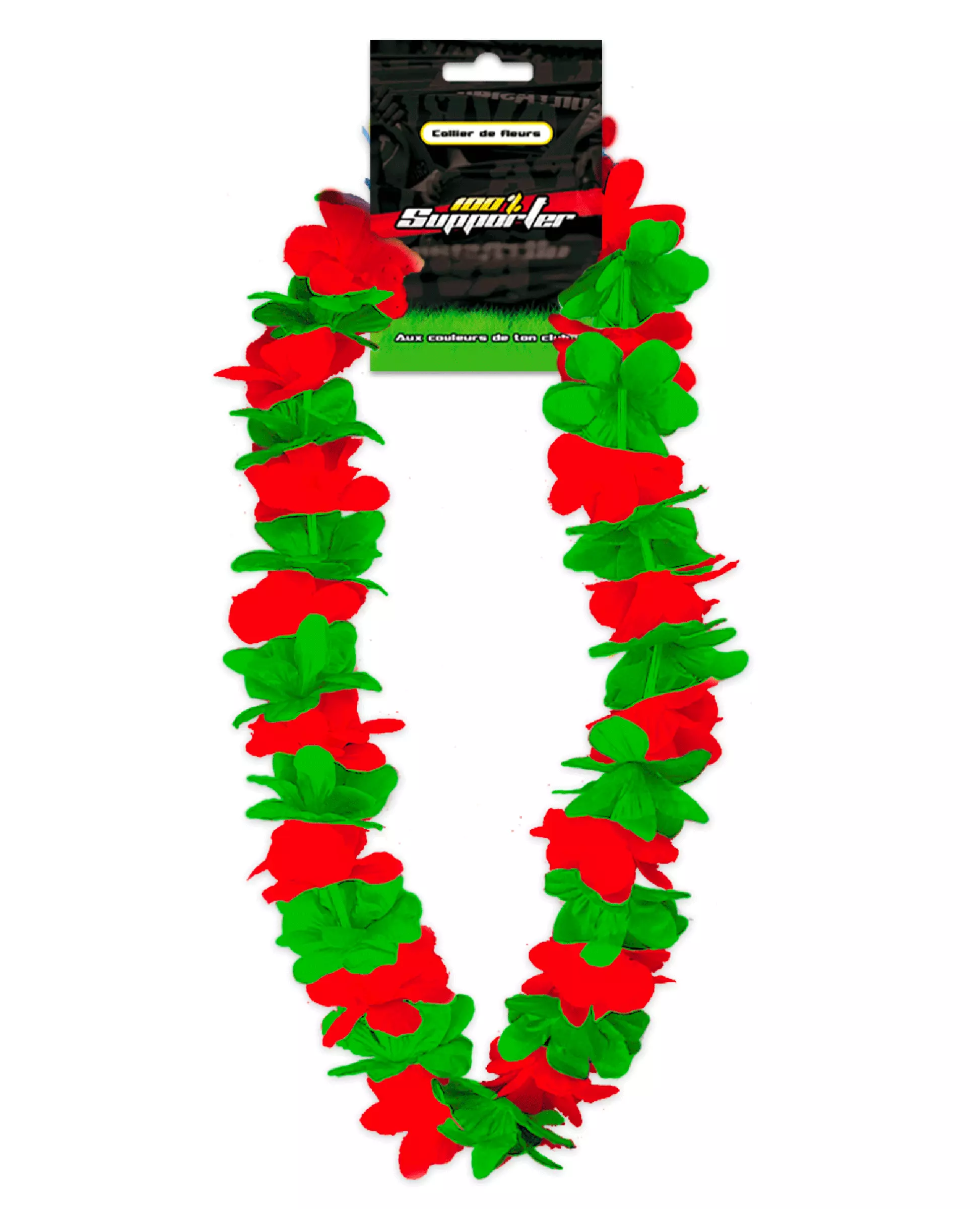 Support Portugal at the next sporting competition This Hawaiian supporter necklace is made up of synthetic flowers in red and green. In the colors of the Portuguese flag, this supporter necklace will be perfect to express your fervor for the next World Cup or the Euro. Accessories included: Necklace