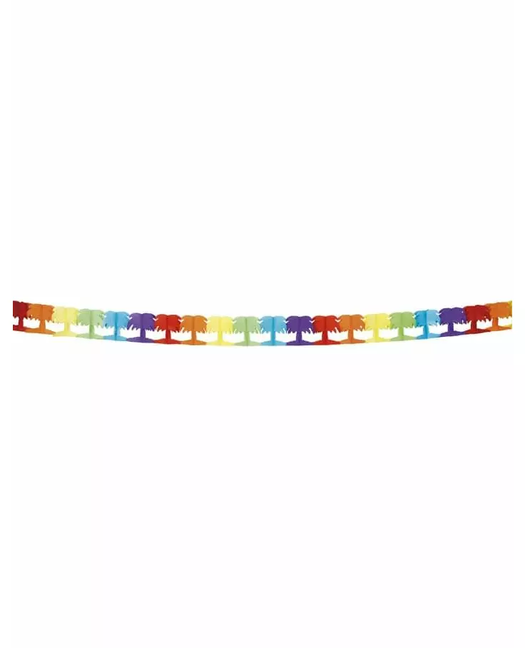 A colorful atmosphere under the palm trees! This paper garland measures approximately 4 meters in length. It is made up of multicolored paper palm trees. These palm trees measure approximately 16 cm in height. This garland will be perfect to complete your decoration for a beach and coconut palm themed party. Accessories included: Garland Material: Paper