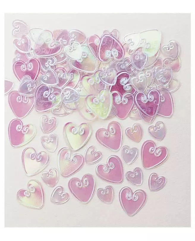 myriad of hearts with iridescent reflections! This bag contains approximately 14 g of iridescent heart confetti. These confetti have pearly iridescent reflections and form small hearts of various sizes in relief. They will be perfect for decorating your table for Valentine's Day!. Accessories included: 1 Bag of confetti