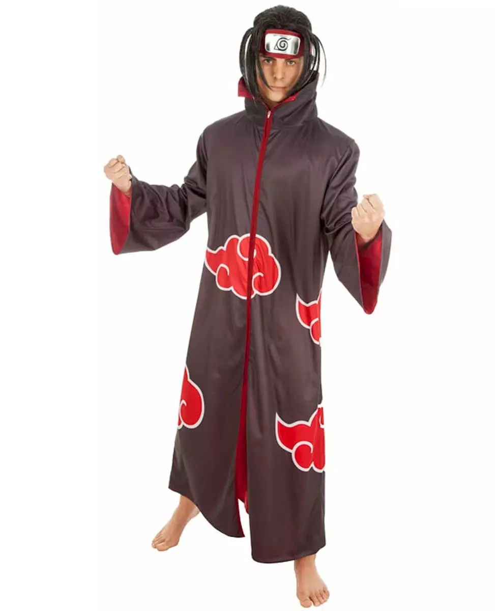 Join the Naruto universe with this Itachi costume This Itachi™ costume for adults is officially licensed by Naruto™. It consists of a dress and a headband (wig not included). The long dress is printed with red clouds. It has a high collar that will dress your neck. A headband completes this costume. This Itachi costume will be perfect for a comics and cartoon-themed costume party, or for Carnival. Accessories included: Dress Headband Material: 100% Polyester Care: Hand wash