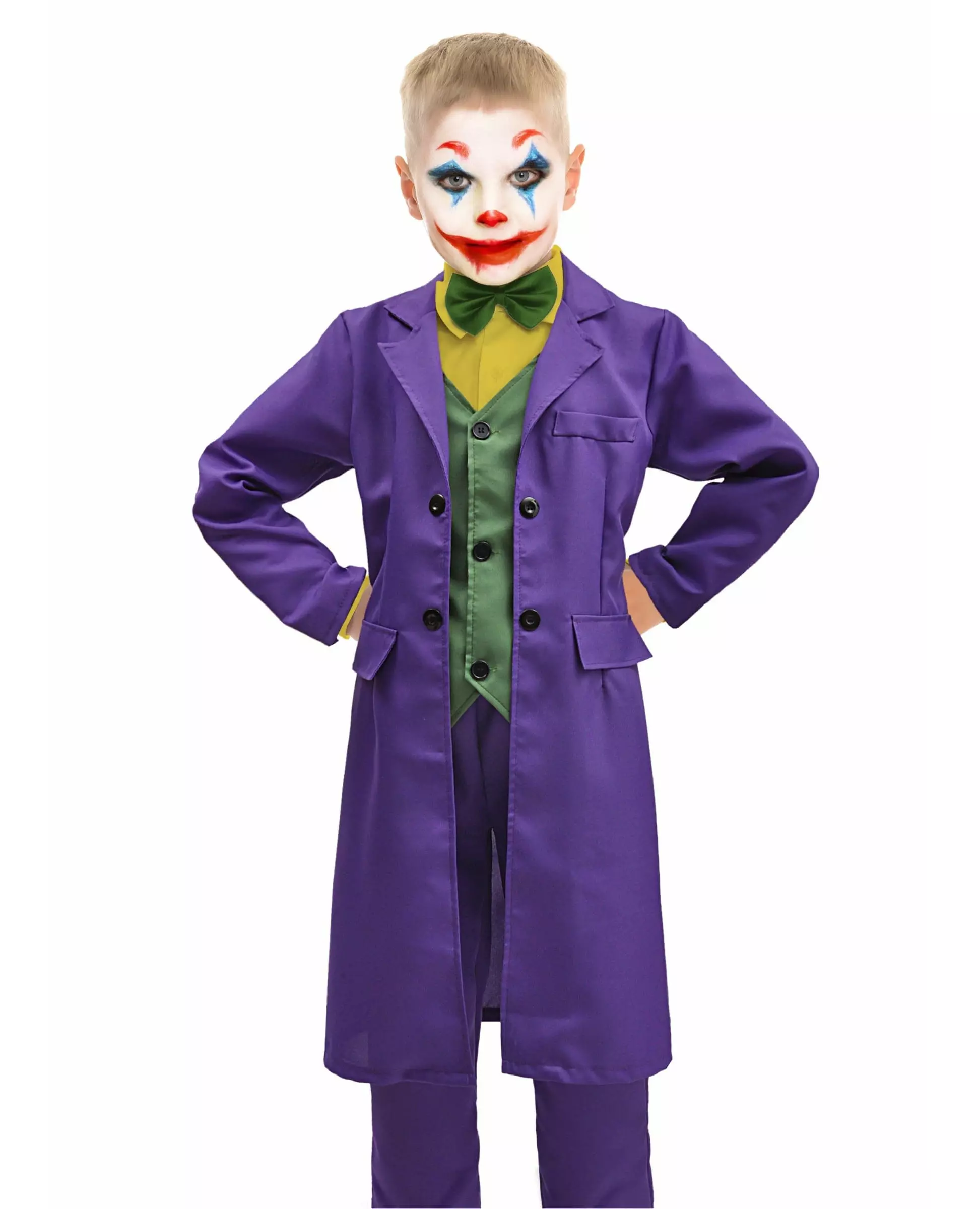 Play as a super villain! This officially licensed Joker™ costume is for boys. It consists of a jacket with a faux waistcoat and pants (shirt and bow tie not included). The long jacket is purple with matching faux buttons. It has a cute scoop collar with faux pockets for even more realism. A faux waistcoat is sewn onto the jacket. The pants mimic a three-piece suit. They match the jacket. This Joker™ costume will be perfect for playing a super villain at a costume party or birthday party themed around movie and comic book characters or for Halloween night. Material: 100% polyester. Accessories included: Jacket with fake vest Pants Care: Hand wash or dry clean