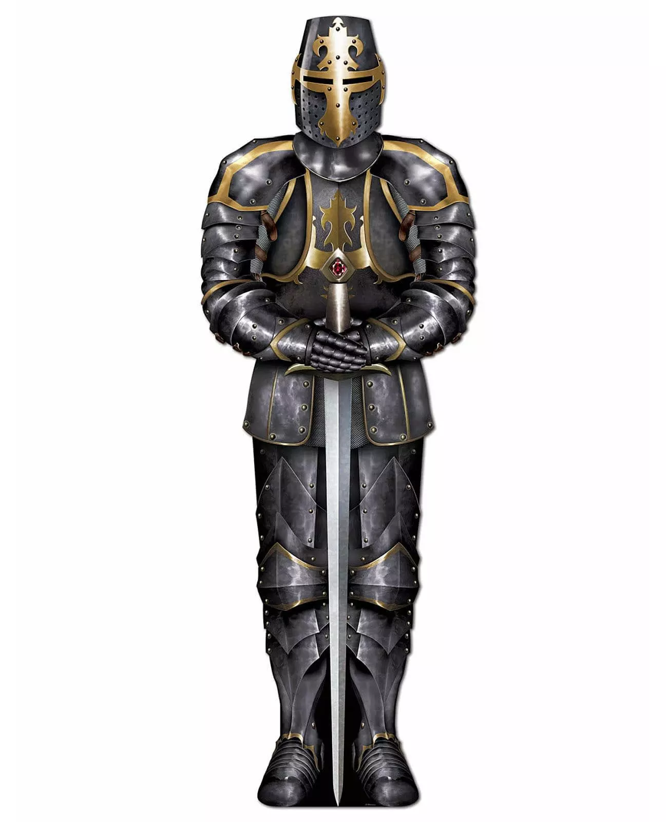 terrifying knight! This set contains a room decoration. This room decoration represents a knight in armor holding his sword in his hands. This haunted knight measures approximately 182 cm. The perfect decoration that will bring a spooky touch to your room, whether as a room decoration or to finalize the decoration of your buffet during the Halloween party!. Accessories included: 1 Decoration Material: Cardboard