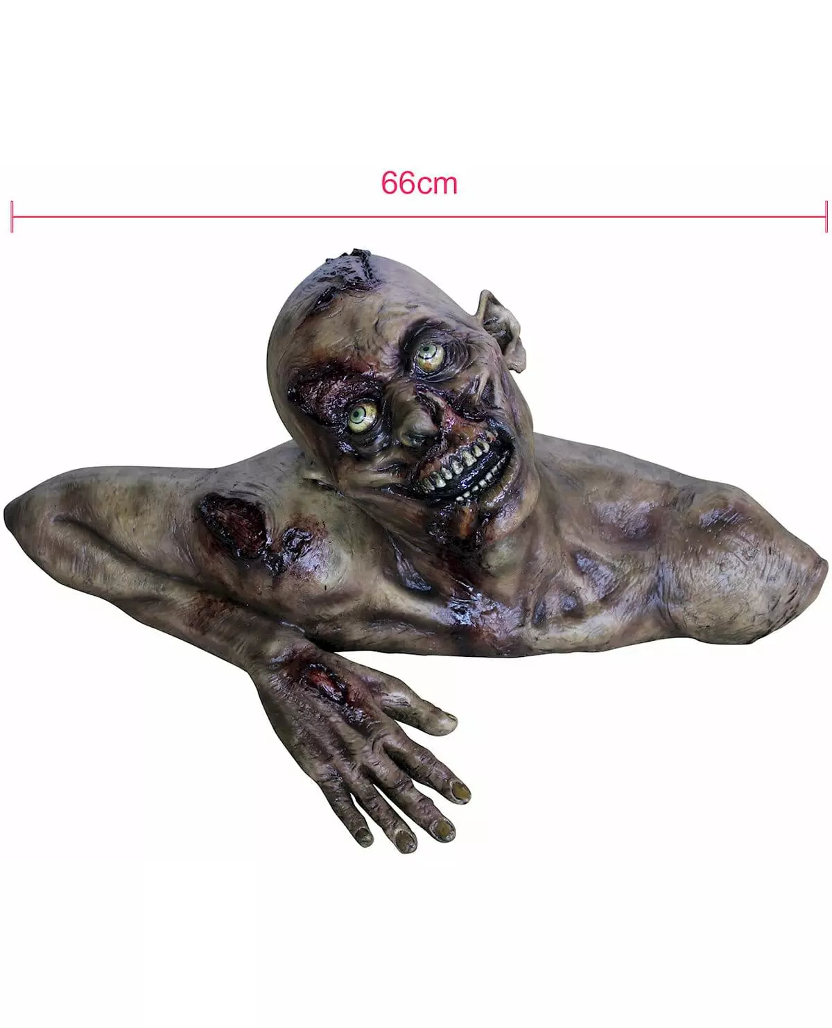Scary! This item represents the bust of a life-size latex zombie (66cm wide and 30cm high). It sits directly on the ground to create the illusion of a zombie emerging from a pool or the ground and will allow you to scare your friends for sure. It will be ideal for decorating your home for Halloween or any other horror-themed party. Accessories included: zombie bust
