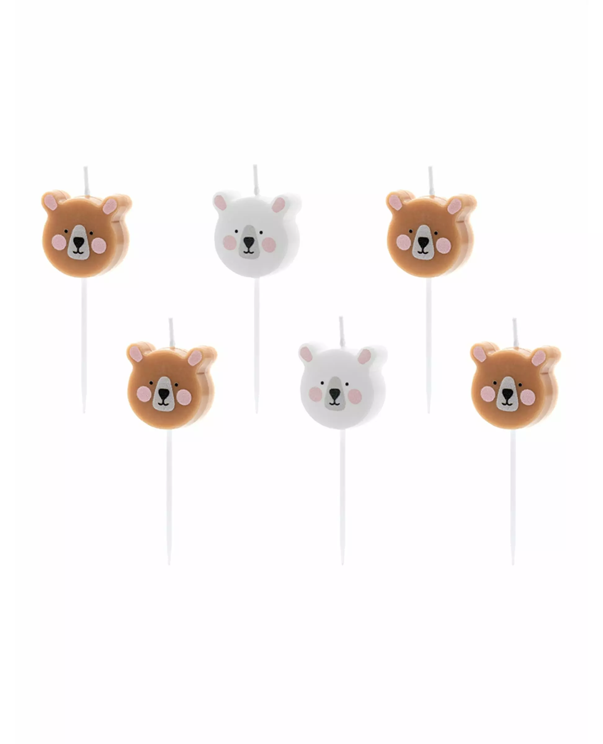 Little bears to blow out your candles! These birthday candles are sold in packs of 6. Shaped like little brown and white bears, they measure approximately 3 cm and are placed on a plastic stem so that they easily fit on your cake. Decorate a birthday cake with these bear candles for your child's greatest pleasure!. Accessories included: 6 Candles Material: Wax