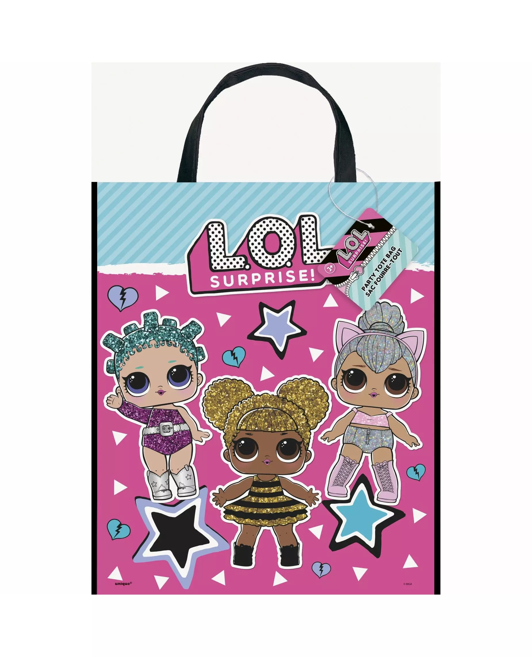pretty bag for your child! This officially licensed Lol Surprise™ plastic bag measures approximately 30 x 38 cm. It is bordered in purple with a small black handle. The bag is decorated with small Lol Surprise™ dolls with inscriptions in chat bubbles such as "Almost There!" or "Hi bae". This gift bag will be perfect for giving a gift to your child with a nice and reusable packaging! Accessories included: 1 Bag Material: Plastic