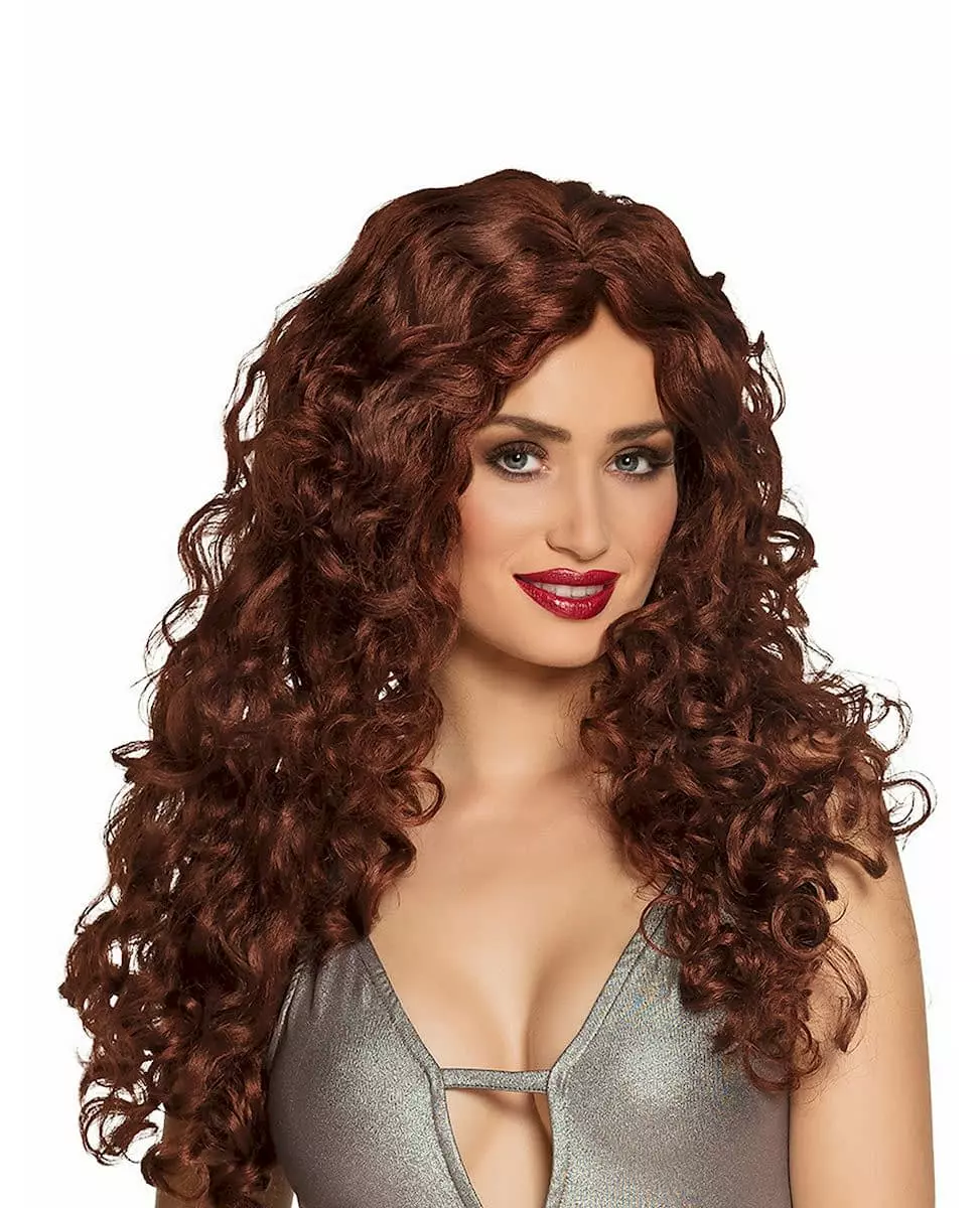 Redhead for a day! This women's wig features long, wavy, voluminous synthetic hair. It's dark red and parted down the center of the head. This wig is perfect for a rebel or pop star costume at Carnival or for a costume party with friends.