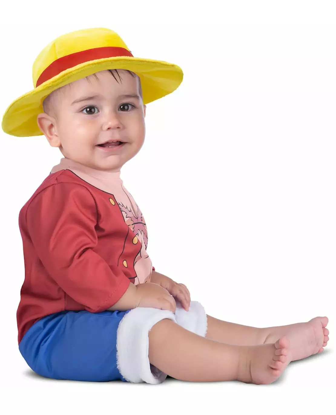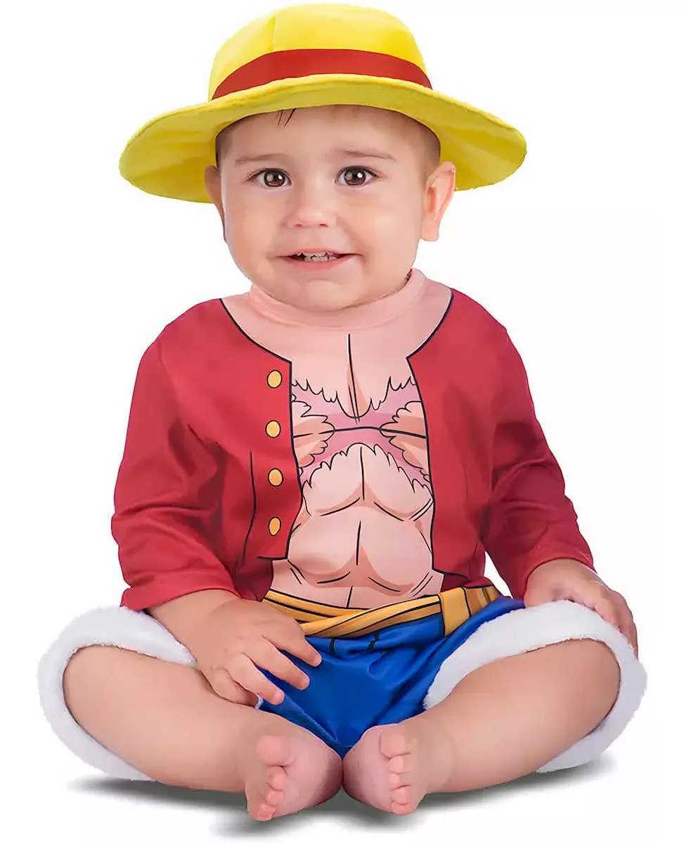 baby pirate king! This Luffy™ costume for babies is officially licensed by One Piece™. It consists of a jumpsuit in the image of Luffy™'s outfit, blue shorts and a red jacket with a print imitating the torso and scar of the famous pirate king! A yellow hat with a red band will complete this costume. This baby costume will be perfect for carnival or a manga-themed party!. Accessories included: 1 Hat 1 jumpsuit Material: 100% polyester Care: Hand wash