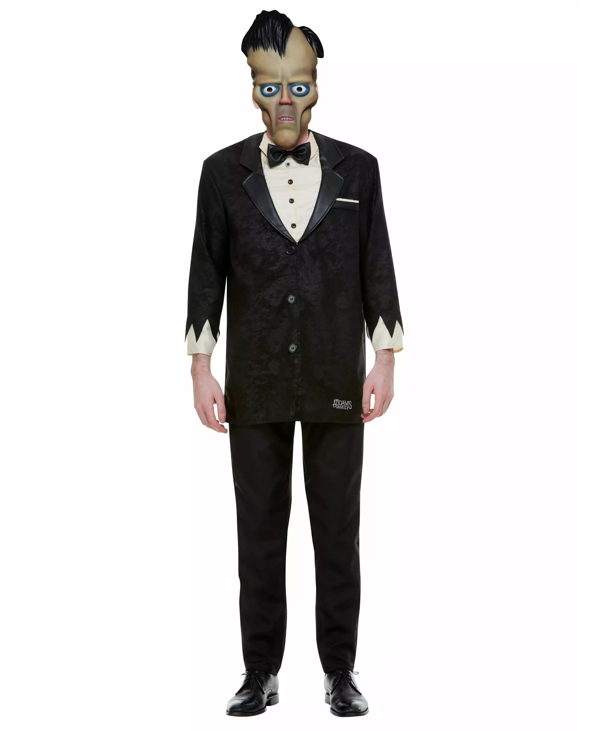 Become the best butler in the manor with this Lurch costume for adults! This Lurch costume for adults is officially licensed by The Addams Family™. It includes the jacket, pants, and mask (shoes are not included). The whole outfit is black, the jacket has long sleeves like the pants. The jacket is torn at the sleeves, and a black bow tie will adorn the neck. All you have to do is put on the Lurch half-mask to become a real zombified butler... His head is elongated and skeletal, the outline of his eyes is blue, and his black hair is scattered across his skull. Grab this Lurch costume to dress up as a house monster on Halloween night! Have other members of your family dress up as characters from The Addams Family™ too! Material: POLY (100.0%). Accessories included: Half mask Jacket Pants Care: Hand wash