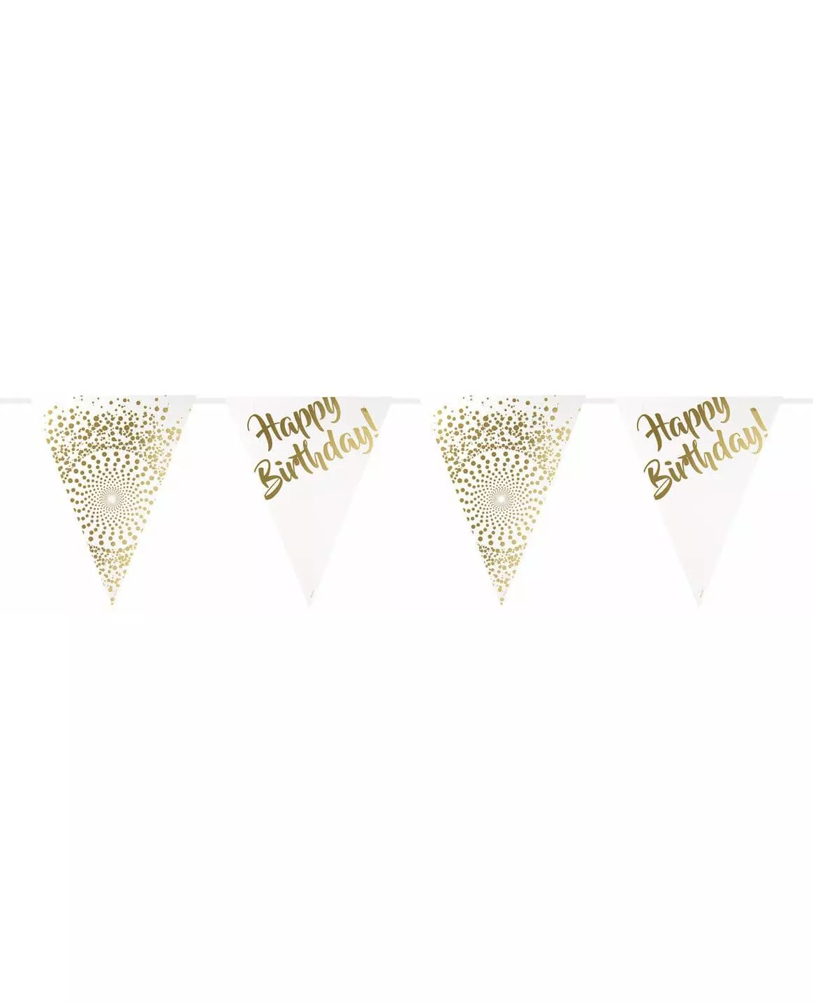 chic and golden birthday! This bunting measures approximately 6 meters long. It consists of white pennants with "Happy Birthday" in gold and pennants with gold polka dots on a white background! You can adjust the size of the garland with a pair of scissors! This garland will be ideal for a beautiful chic and golden birthday decoration! Accessories included: 1 Garland