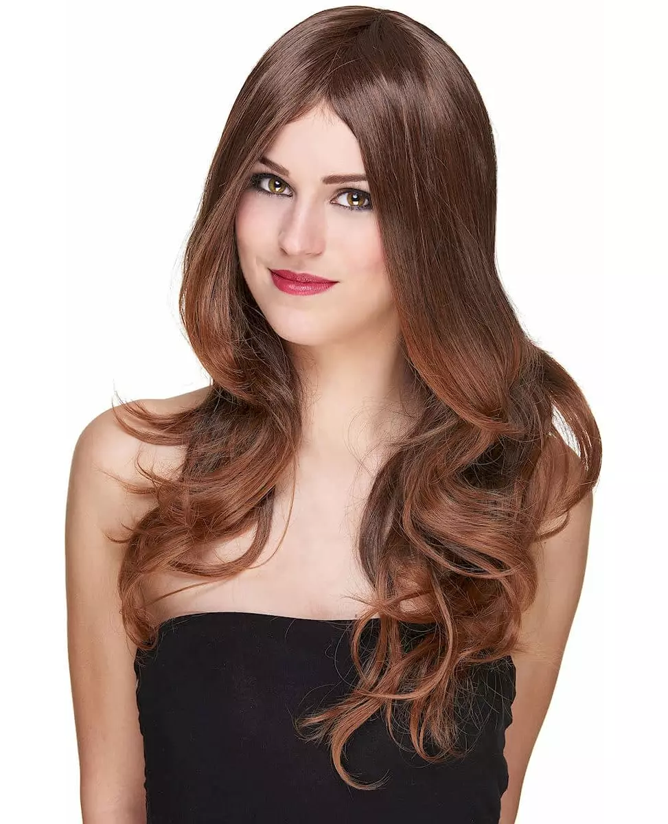 Change your face! This brown hair wig for women is synthetic and long. The hair forms a pretty wavy movement, ideal for a makeover before leaving! During your costume parties, this aesthetic headdress will allow you to completely change your face. Accessories included: Wig Material: 100% Polyester