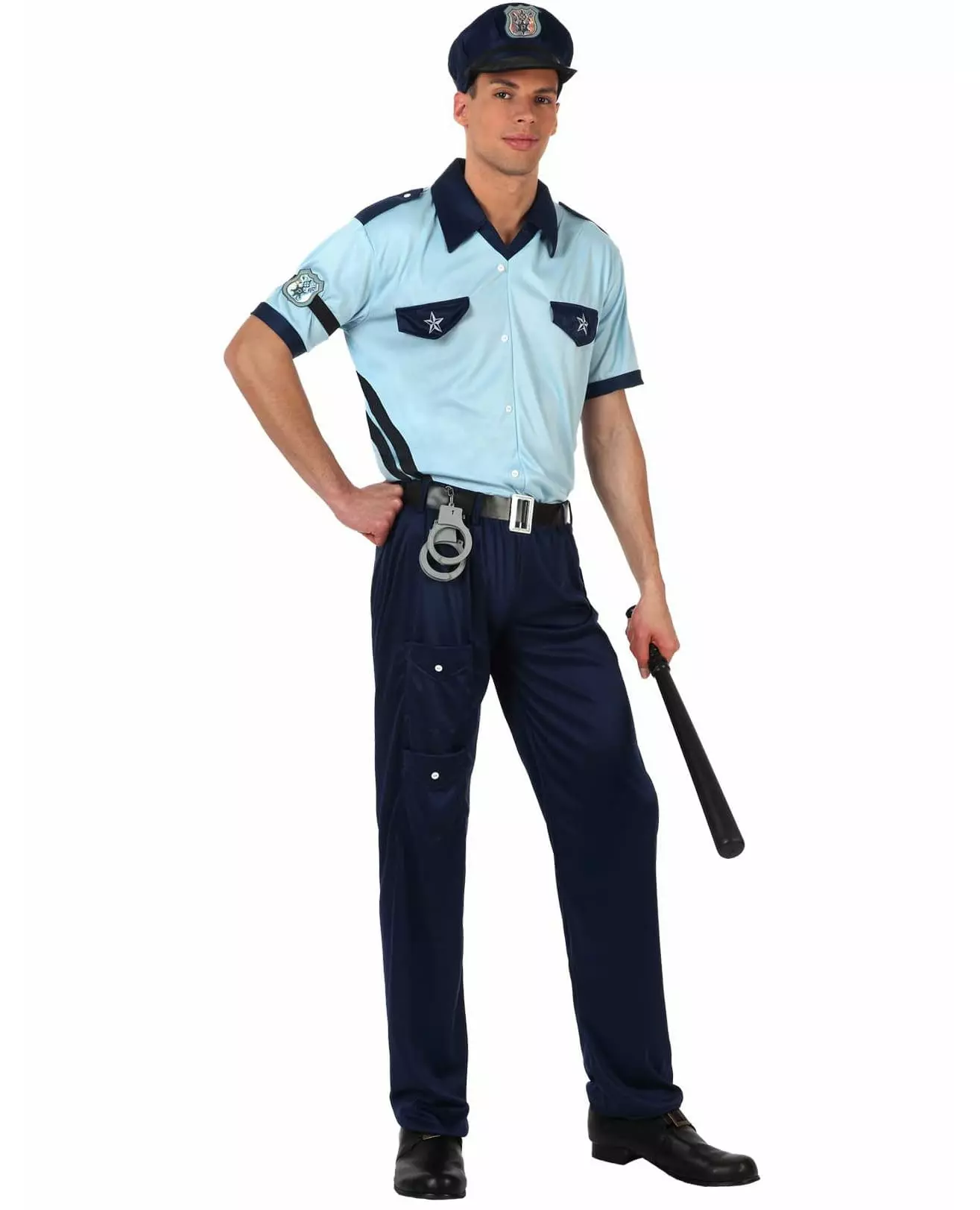 Maintain order! This adult police officer costume consists of a top, pants, a belt, a cap, and an arm warmer. The navy blue pants are elasticated at the waist and will fit perfectly to your body shape. A badge is sewn on the side as well as fake pockets. The top is a fake shirt. It has a collar and fake buttons. It is elasticated and can be easily put on over the head. A black belt, an arm warmer, and a cap accessorize this set. This costume will be ideal for keeping order at your fancy dress or themed parties. Material: 100% POLYESTER Care: Hand washable