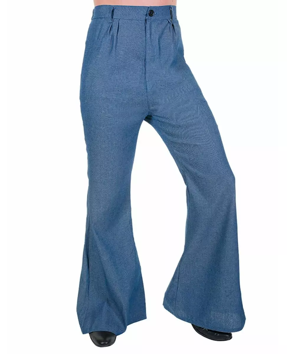For a 100% disco style! This disco costume includes only pants. The pants are denim blue. They have flared legs and are very comfortable to wear. These men's pants will be essential for a disco-themed party! Accessories included: Pants Material: 100% Polyester Care: Hand wash Measurements: For a size L: 44cm waist, 120cm length