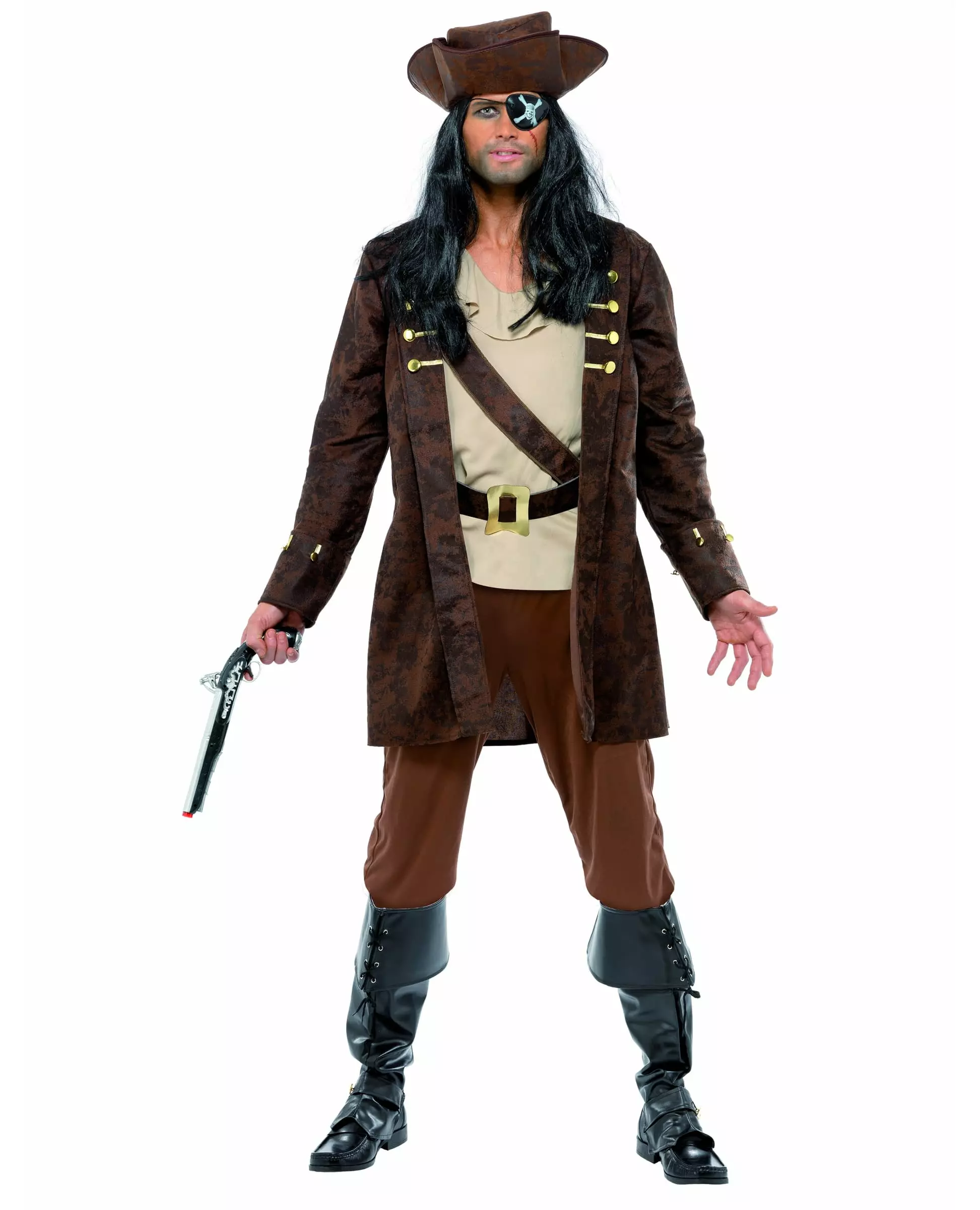 Long suede-effect jacket! This pirate costume for men includes a magnificent mid-length jacket with gold buttons and stitching, including a t-shirt and belt. The pants, elastic at the waist, are made of fine fabric. The hat is made of soft fabric that adapts well to the shape of the head. (Wig, gun and boots not included) This costume is perfect for dressing up at carnival and for your pirate parties. Accessories included: Jacket + T-Shirt + Belt Pants Hat Material: 100% Polyester Care: Hand wash