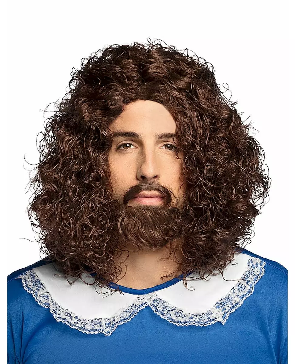 With a mustache and beard! This long, brown musketeer wig has curly hair. A goatee and mustache are included. This kit will be the perfect accessory for your costume parties and carnivals.