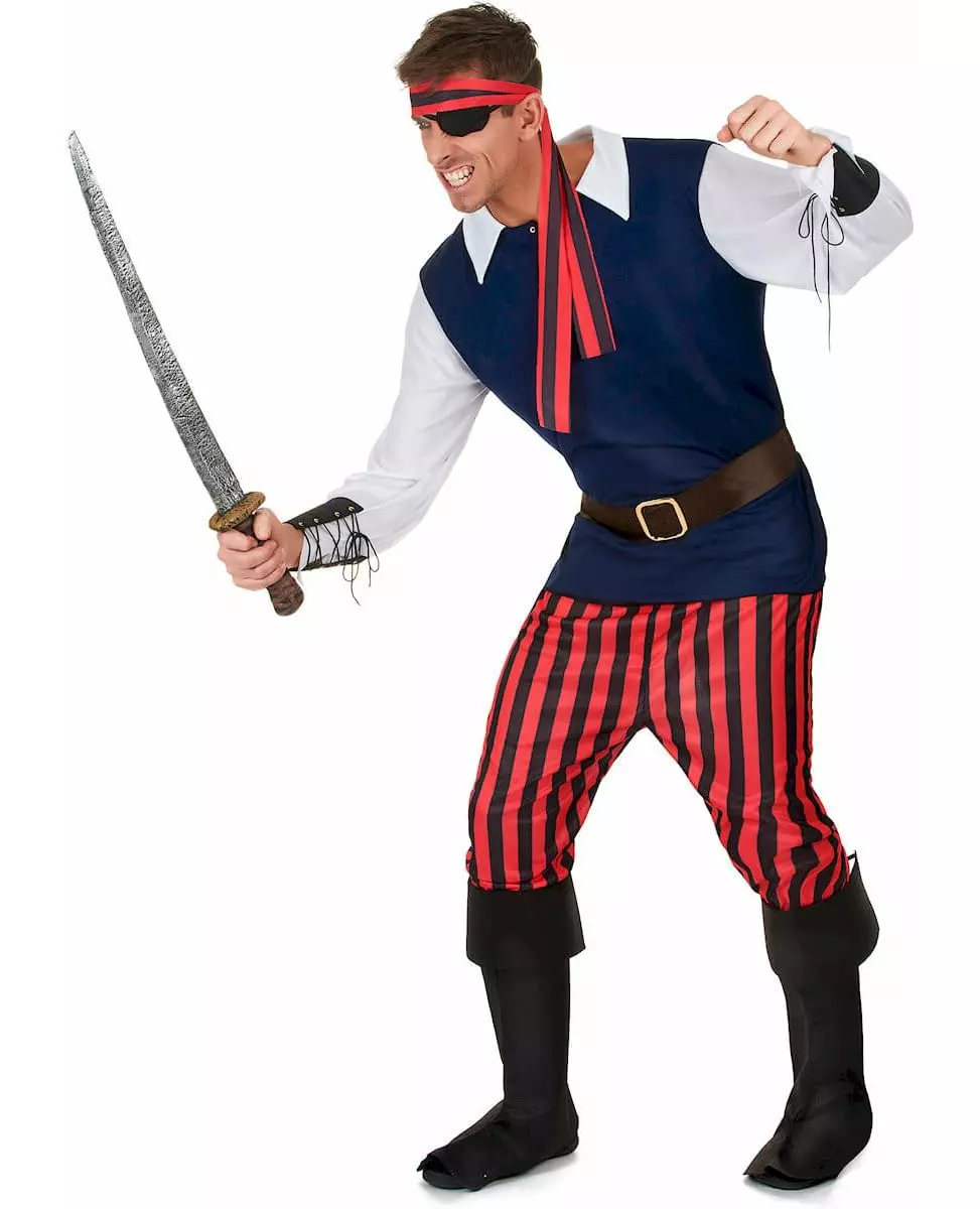Men's Red and Black Striped Pirate Costume